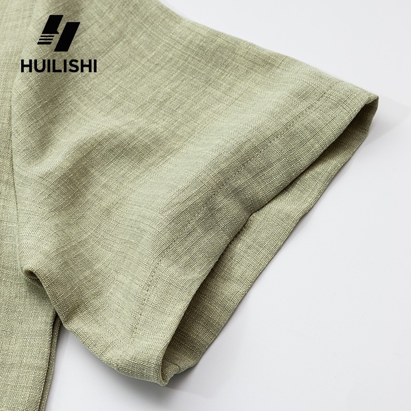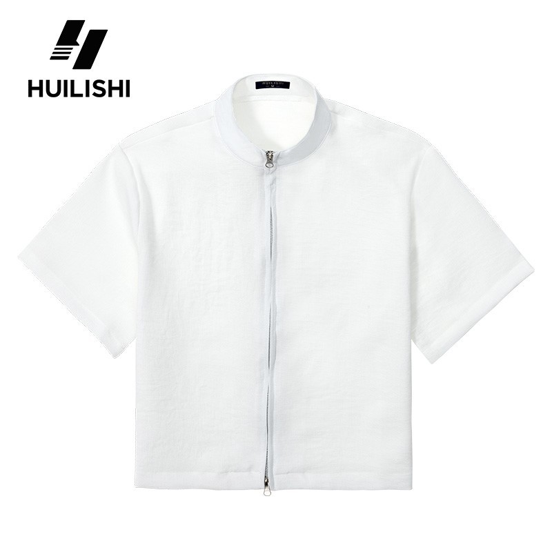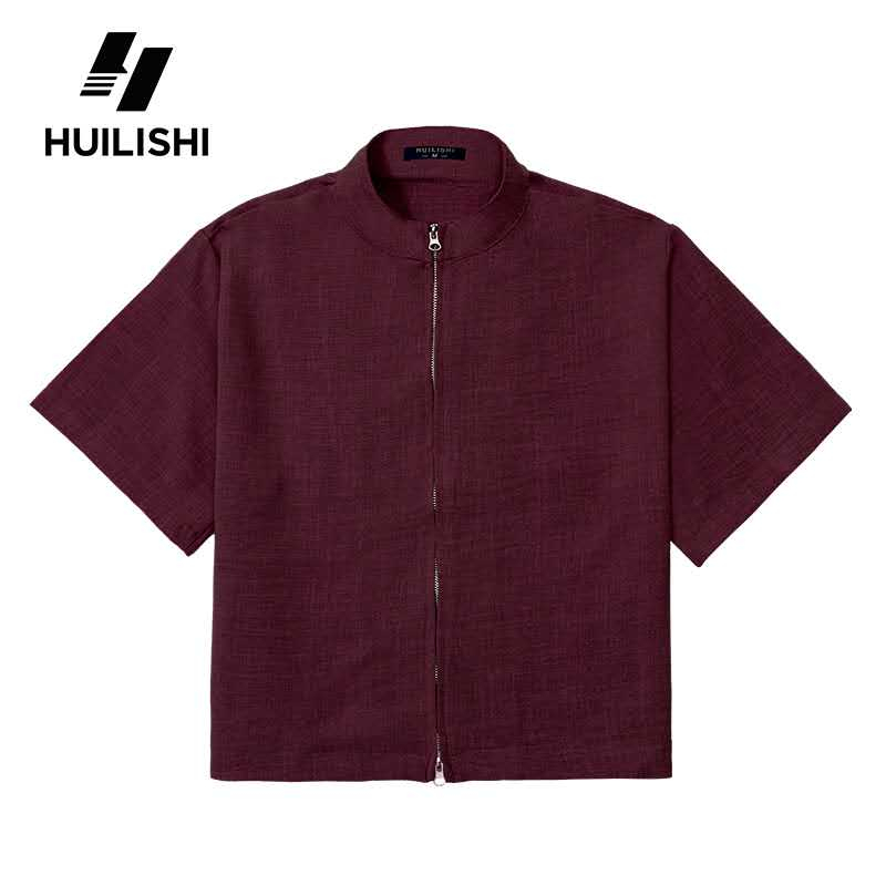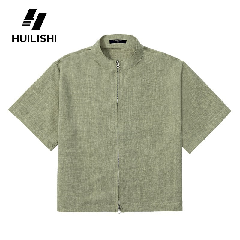 HUILISHI Box Fit Polo for Men Crop Top Summer linen zip-up Stand collar men's short-sleeved Korean s men shirt