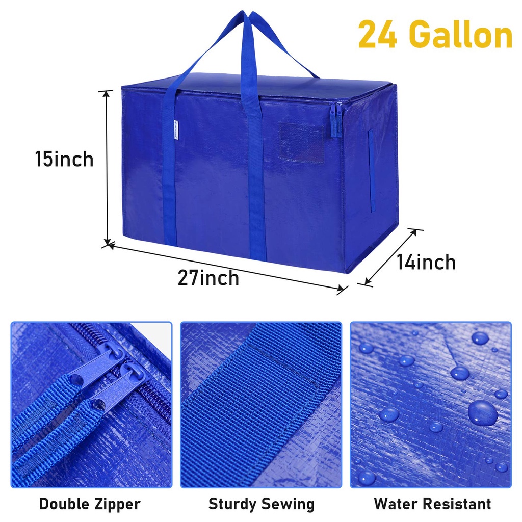 6 Pcs Extra Large Moving Bags With Zippers And Carrying Handles, Heavy Duty Storage Tote For Foldable Bag