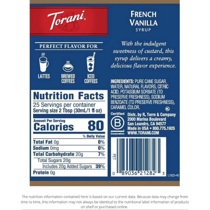 Torani Syrup, French Vanilla, 25.4 fl oz, French Vanilla Syrup Vanilla Flavored Coffee Syrup [SG STOCK]
