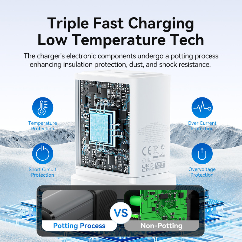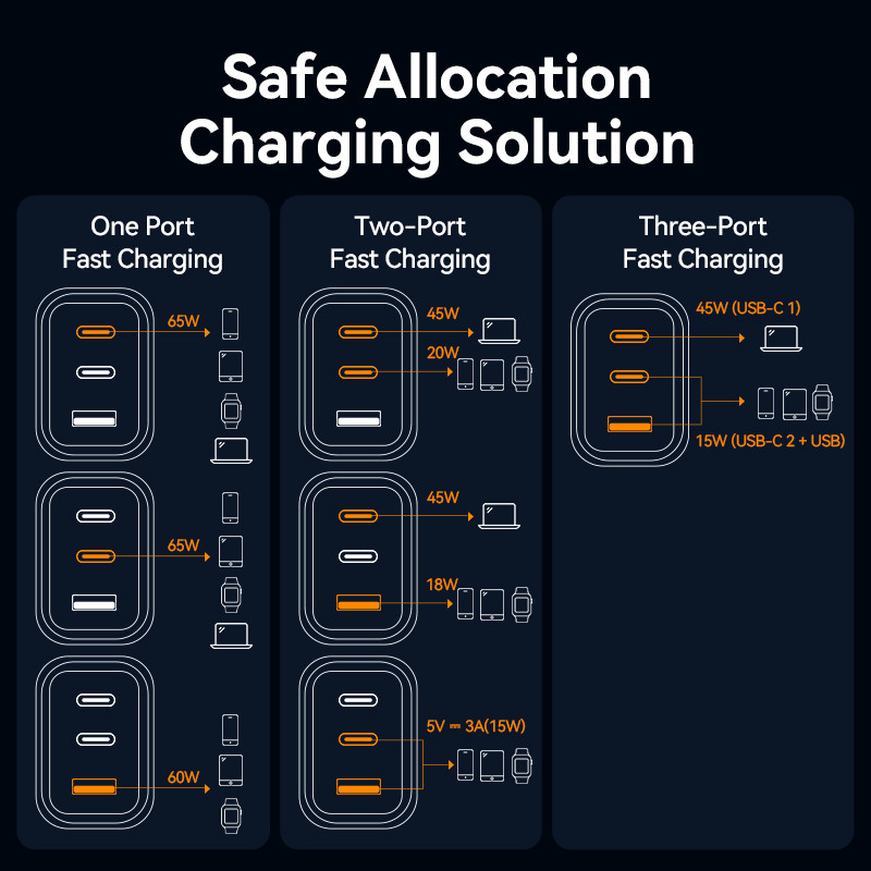 [SG]Vention 65W GaN Charger Fast Charging Type C Adapter 3 Ports Turbo Charging Power Adapter UK SG Plug QC4.0 3.0 PD 3.0 Type C For iPhone/iPad/Laptop