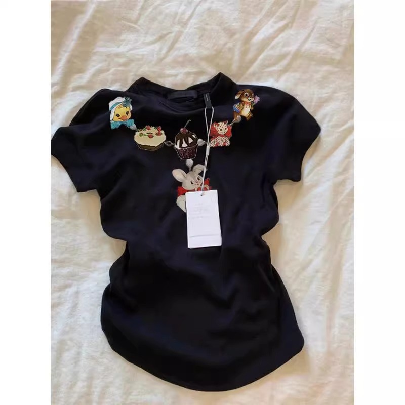 American Retro Design Cartoon Rabbit Necklace Print Short Sleeve T Shirt2025Fashionable Regular Shoulder Top