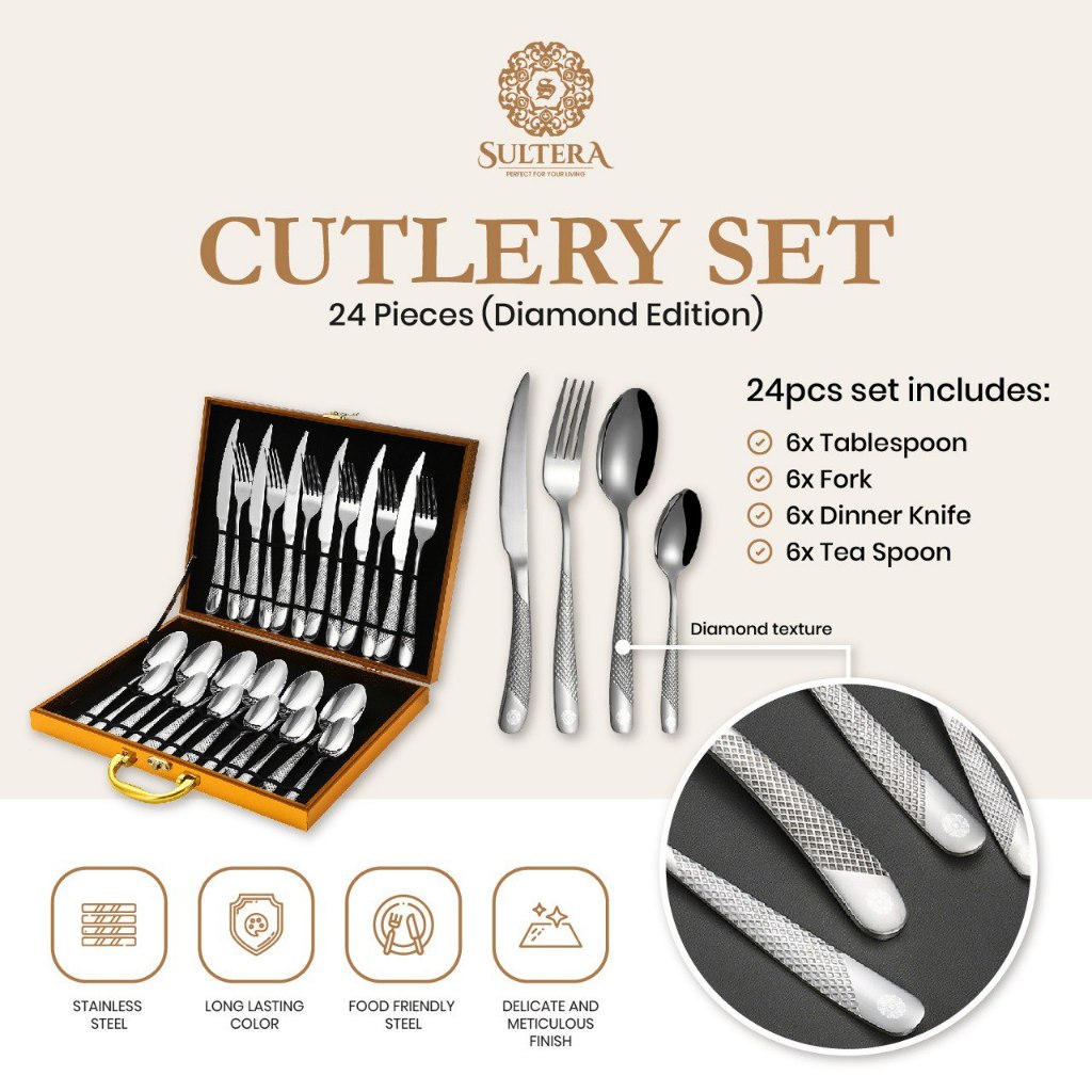 Sultera 12/24pcs Set Sudu Garfu Stainless 24pcs Steel Rose Gold Black Fork Spoon Gold Premium Cutlery 24pcs Set Kutleri