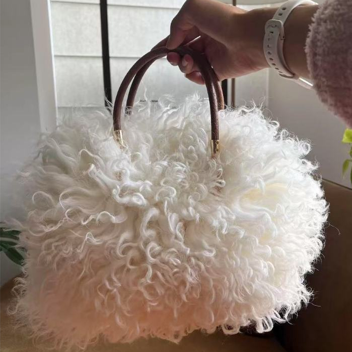 Light Luxury Style Soft Pack Genuine Leather Sheepskin Home Decoration Wool Cushion Plush Floor Cushion Doll diy Material Handmade Leather Pet Keeping Warm