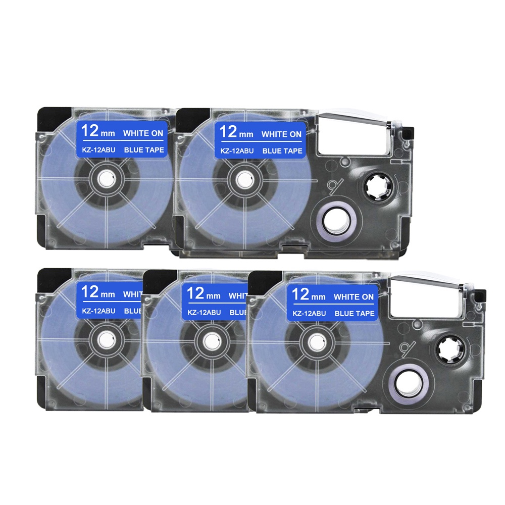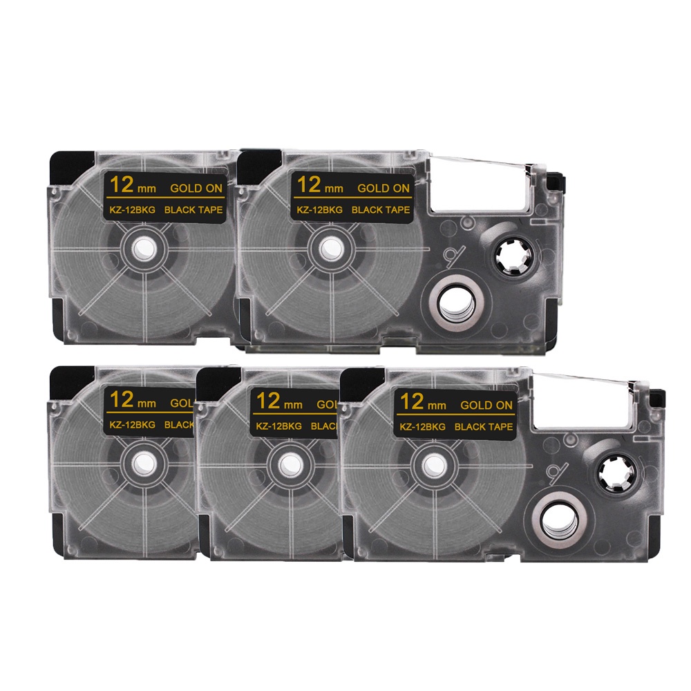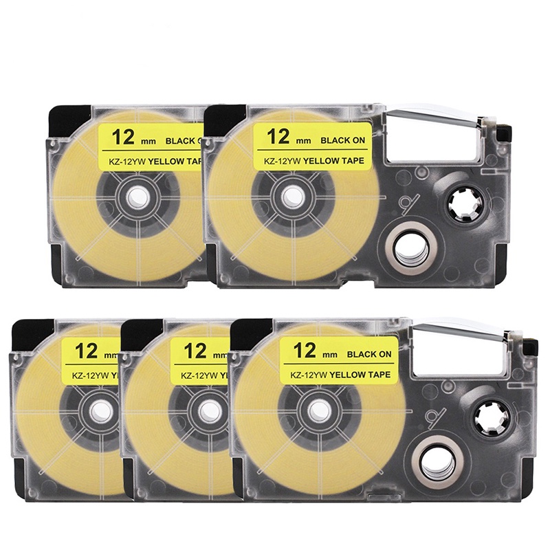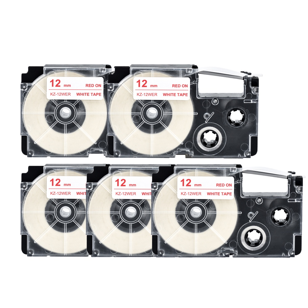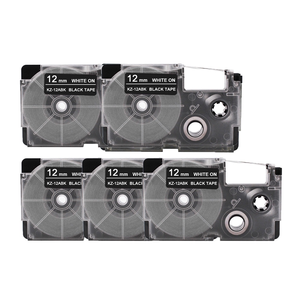 5 Pack 12mm Label Tape Cartridge XR12WE XR-12WE XR-12YW XR12RD XR6GN XR-12WER Compatible For Casio Ez-Label Printer Kl-60 Kl-60L Kl-100 Kl-120 Kl-130 Kl-170 Kl-8700 Label Maker