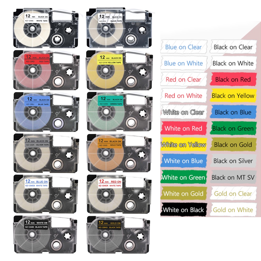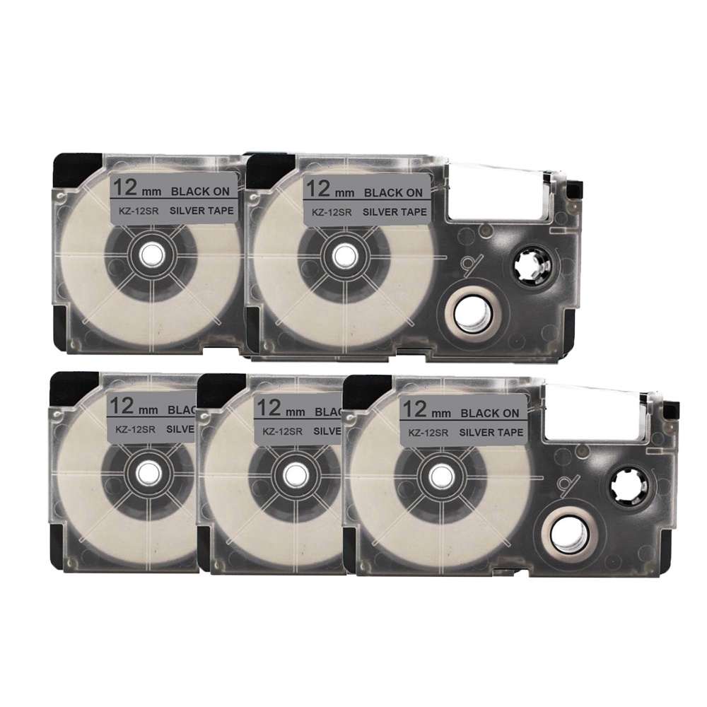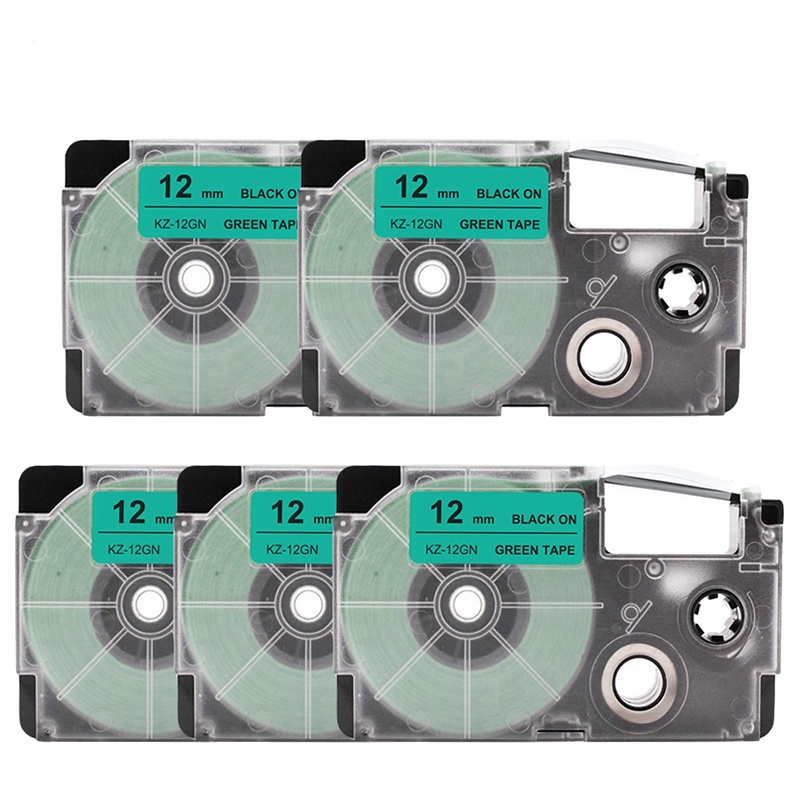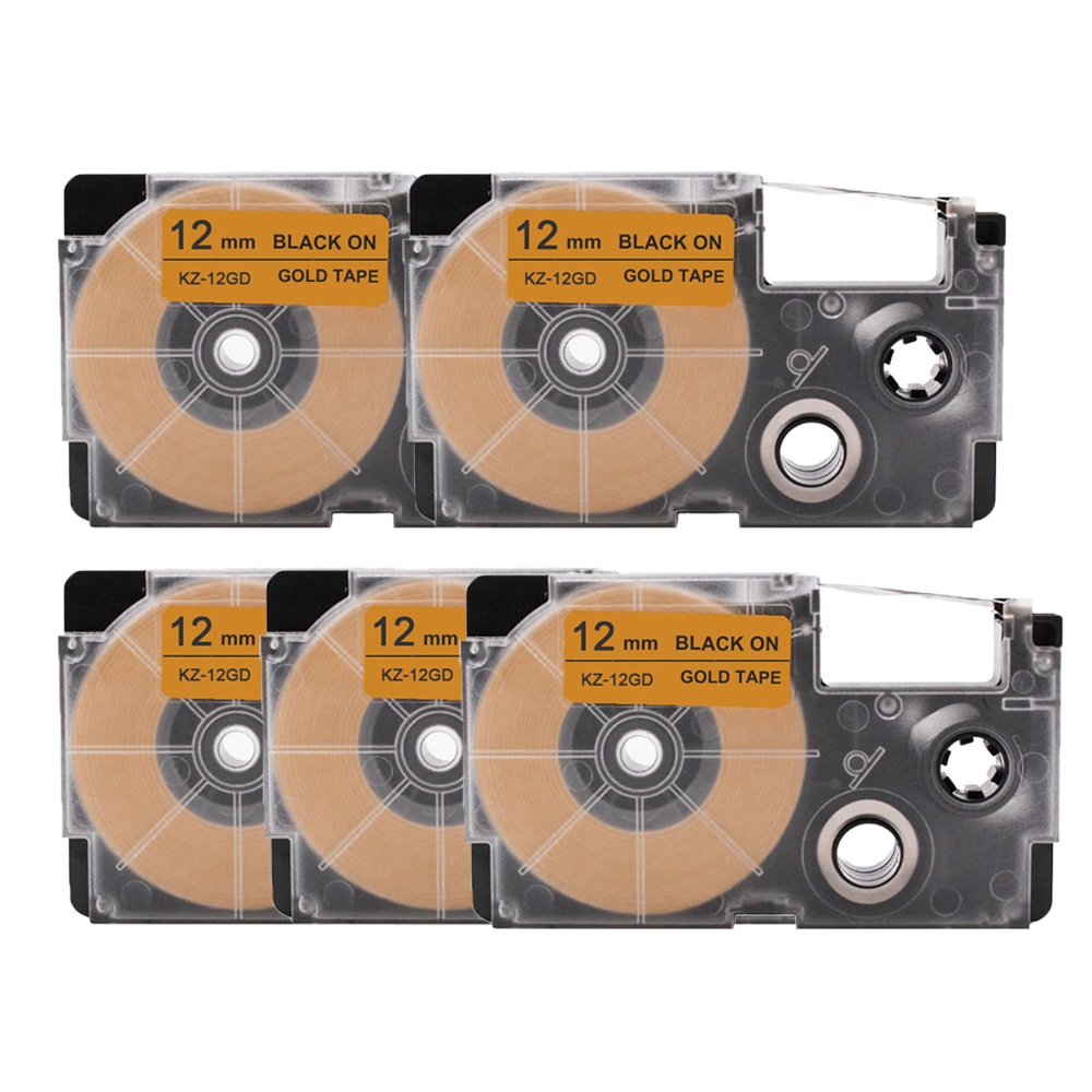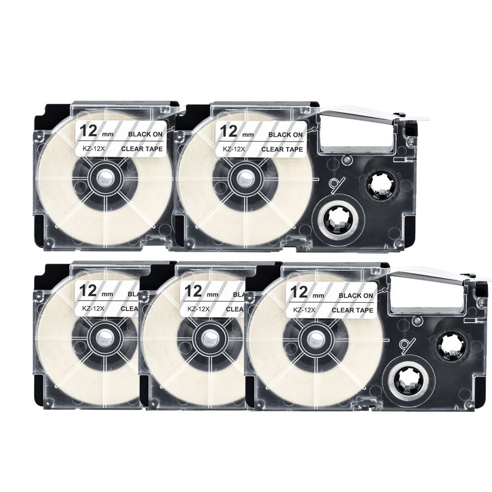 5 Pack 12mm Label Tape Cartridge XR12WE XR-12WE XR-12YW XR12RD XR6GN XR-12WER Compatible For Casio Ez-Label Printer Kl-60 Kl-60L Kl-100 Kl-120 Kl-130 Kl-170 Kl-8700 Label Maker