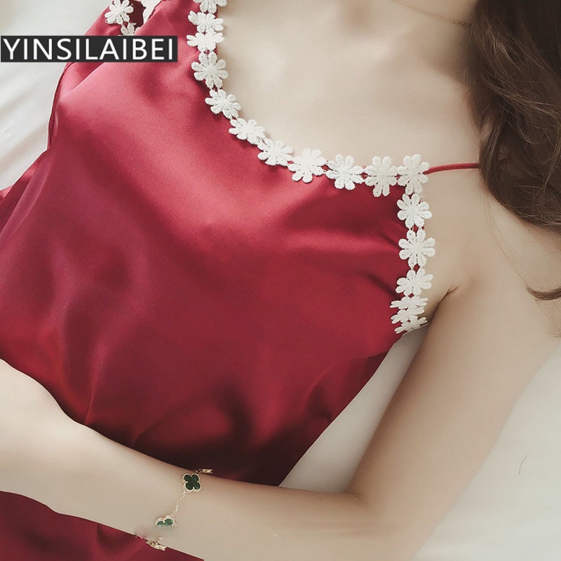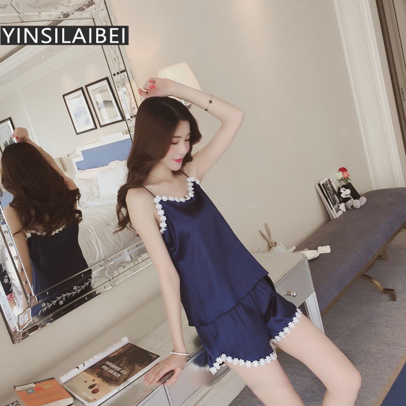 Ladies Summer Sexy Faux Silk Satin Sleepwear Thin Sleeveless Attractive Women's Pajamas Set with Shorts/pants Kawaii Plus Size Sleeping Oversize Home Clothes