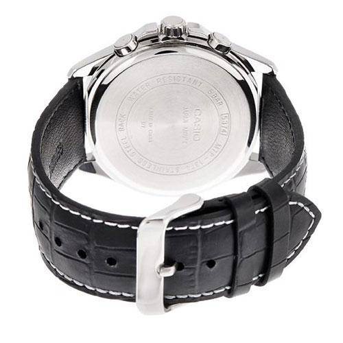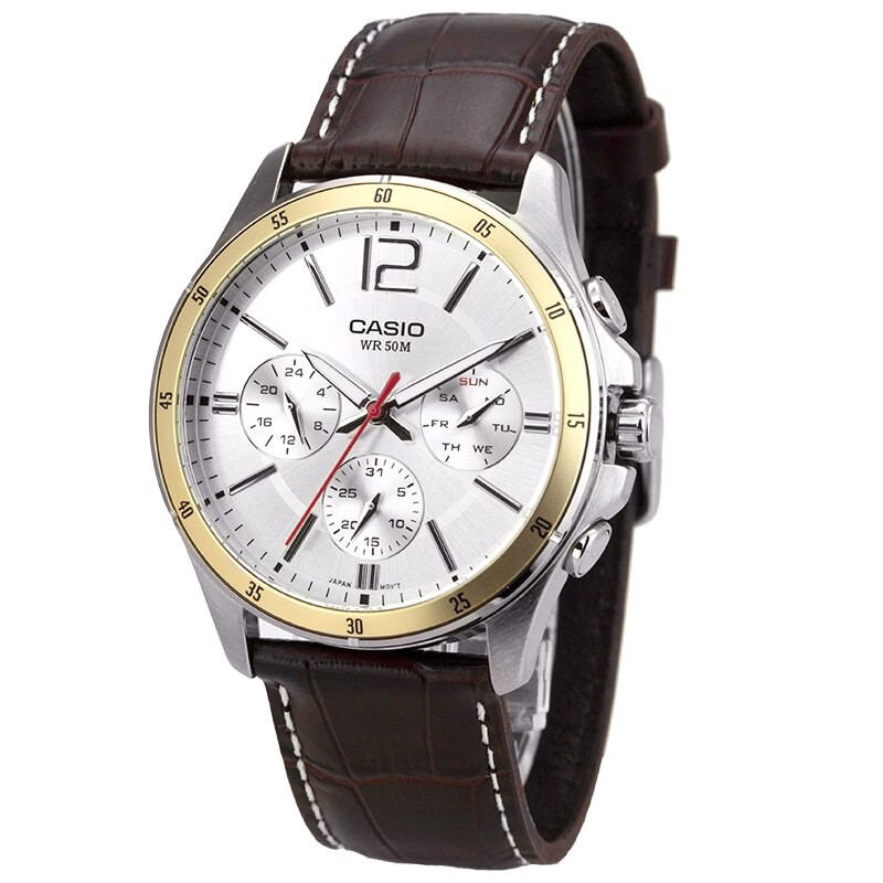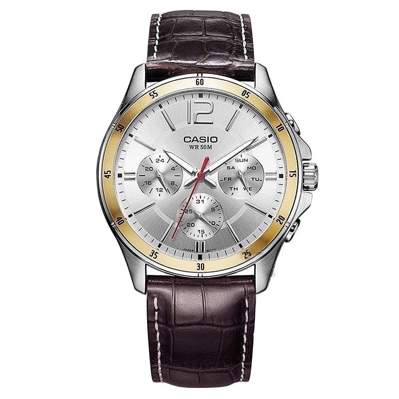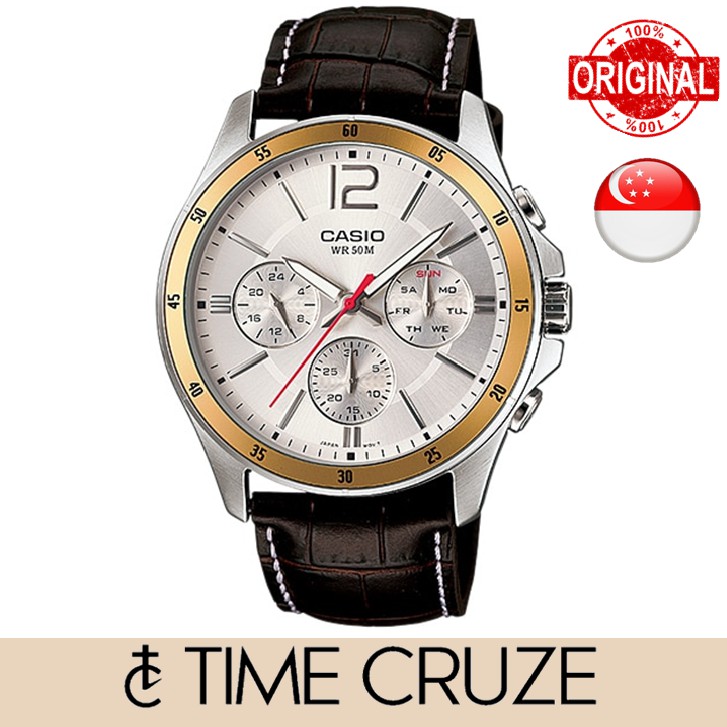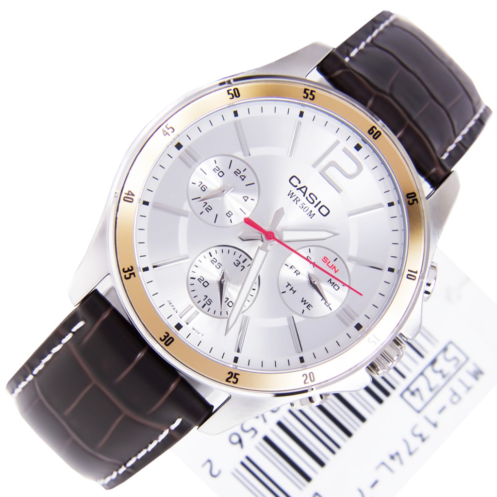 [Time Cruze] Casio Enticer Chronograph Quartz Analog Brown Leather White Dial Men Watch MTP-1374L-7AVDF MTP-1374L-7A