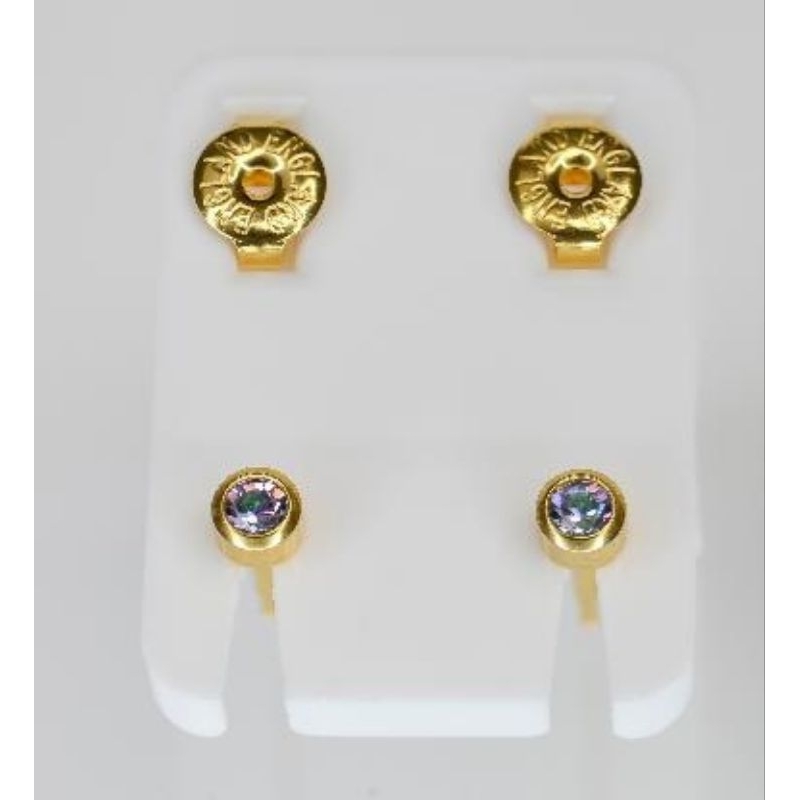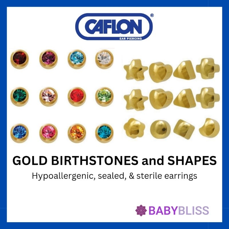 AUTHENTIC CAFLON Baby Safe GOLD BIRTHSTONE & SHAPES 3mm Stud Earrings (Hypoallergenic) kids earring