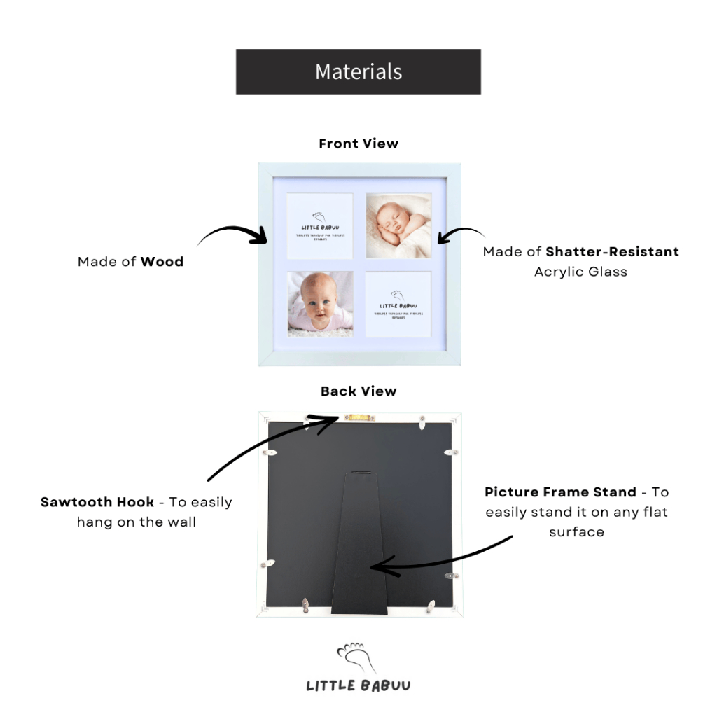 Little Babuu - 11.5x11.5" Clay Baby & Pet Handprint/Footprint Frame Set | Newborn to 3months old Bab