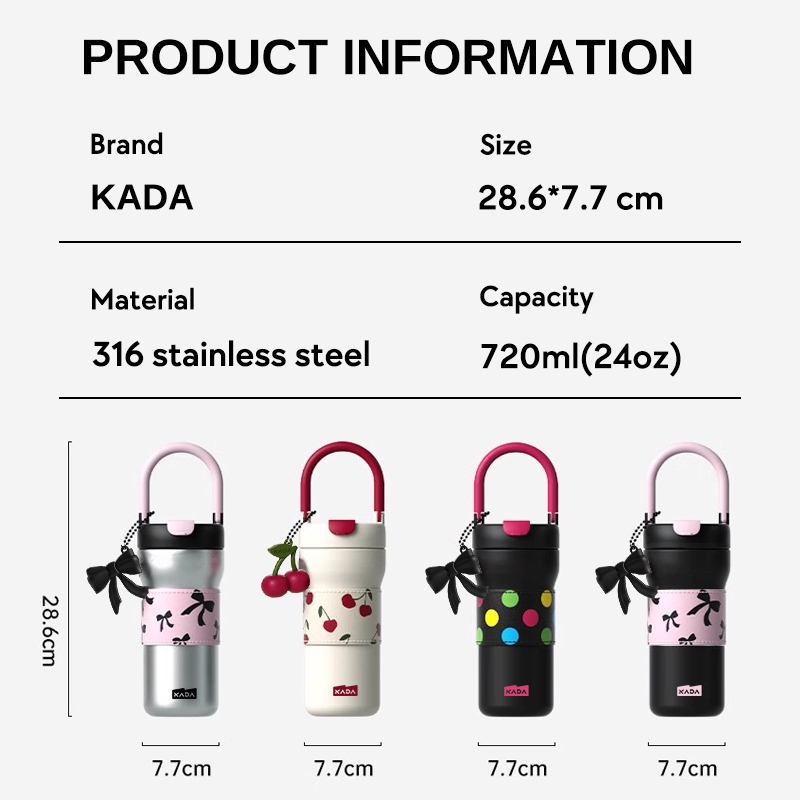 KADA Tumbler Hot&Cold 720ml(24oz) with Long Handle Straw 316 Stainless Steel for Office Outdoor