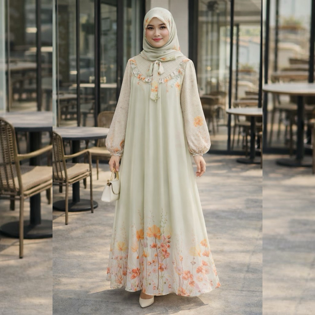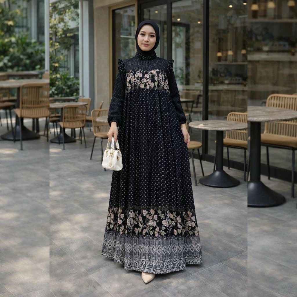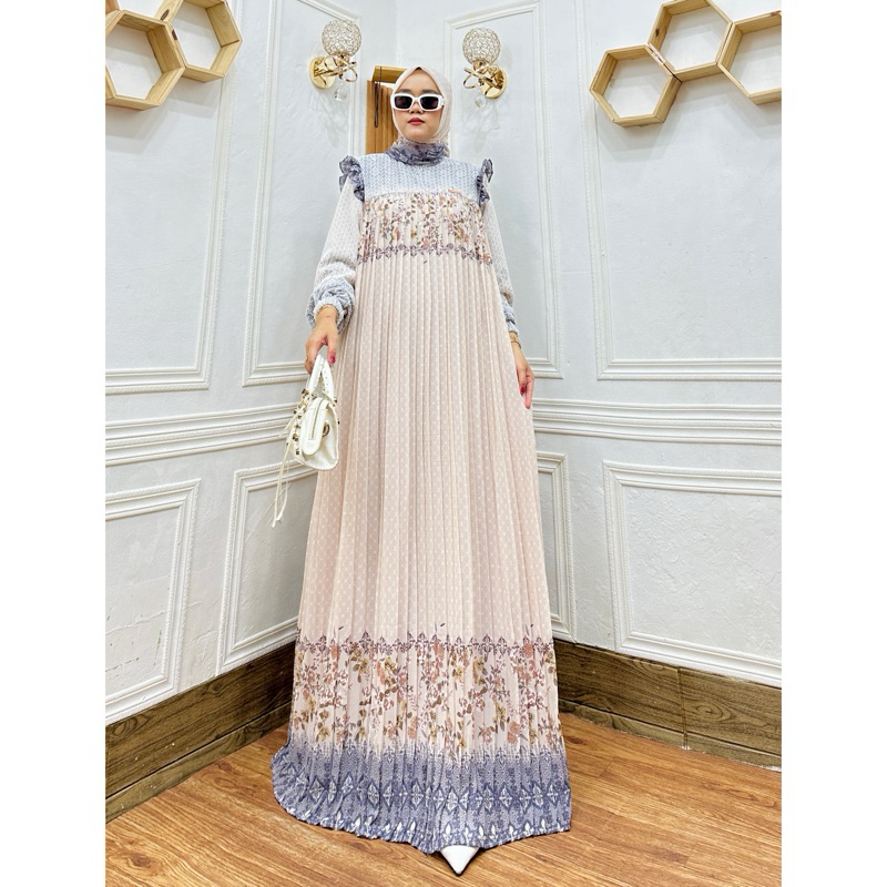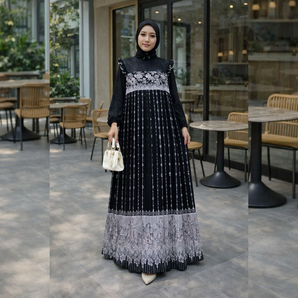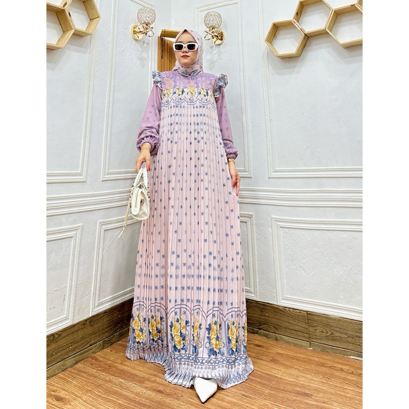 MAHINA SET HIJAB By ZIYA Square New Tille Premium Mix Ceruty Pleated Armany Babydoll Full Lining Abaya Set Hijab