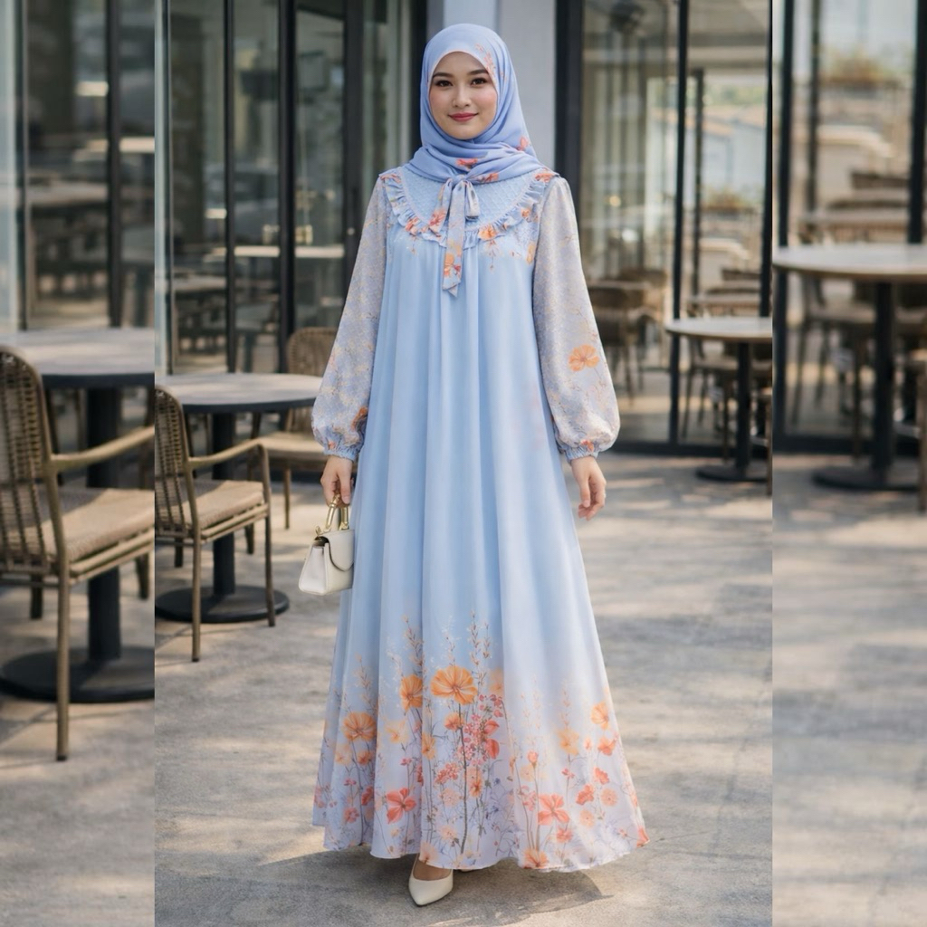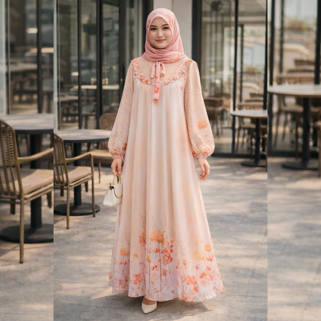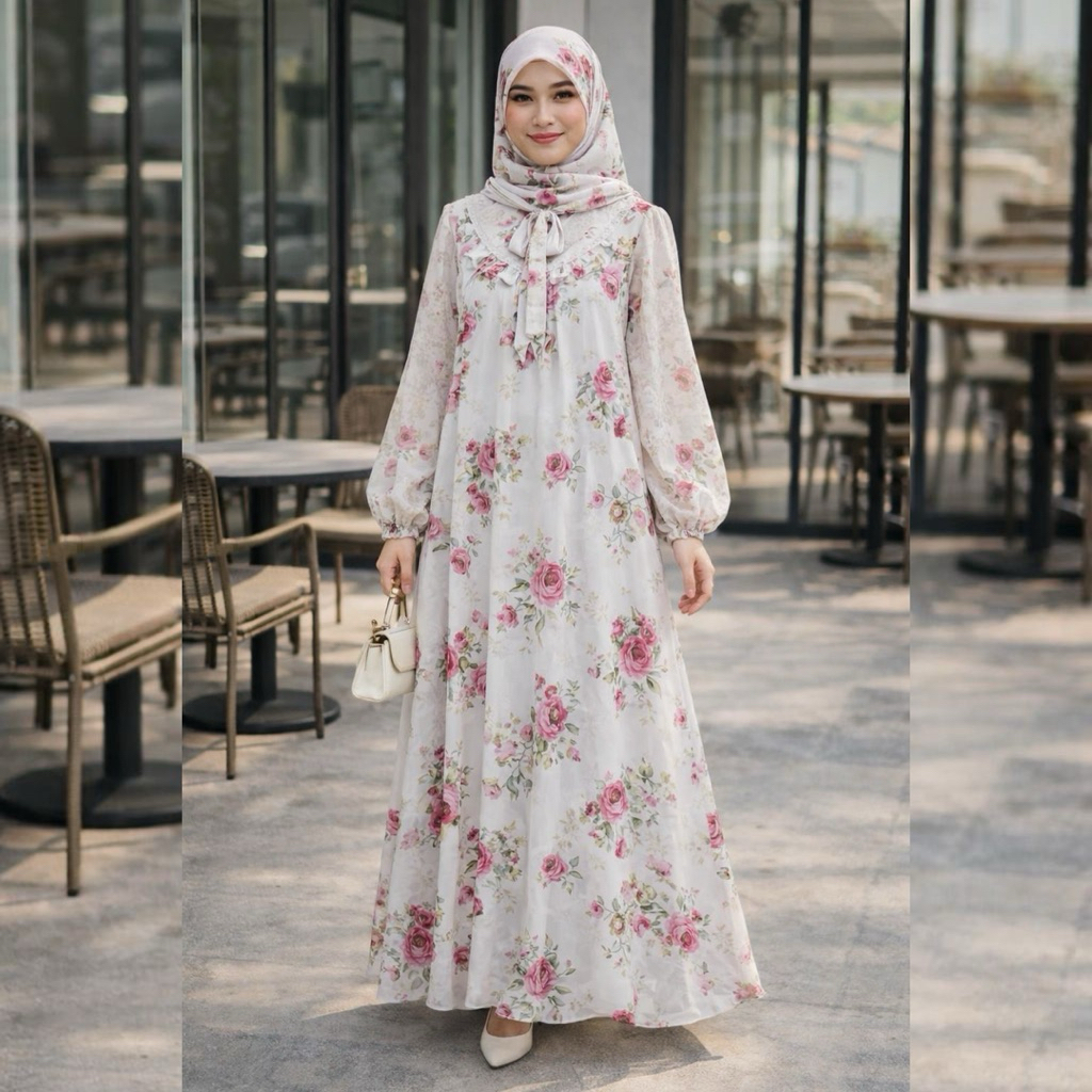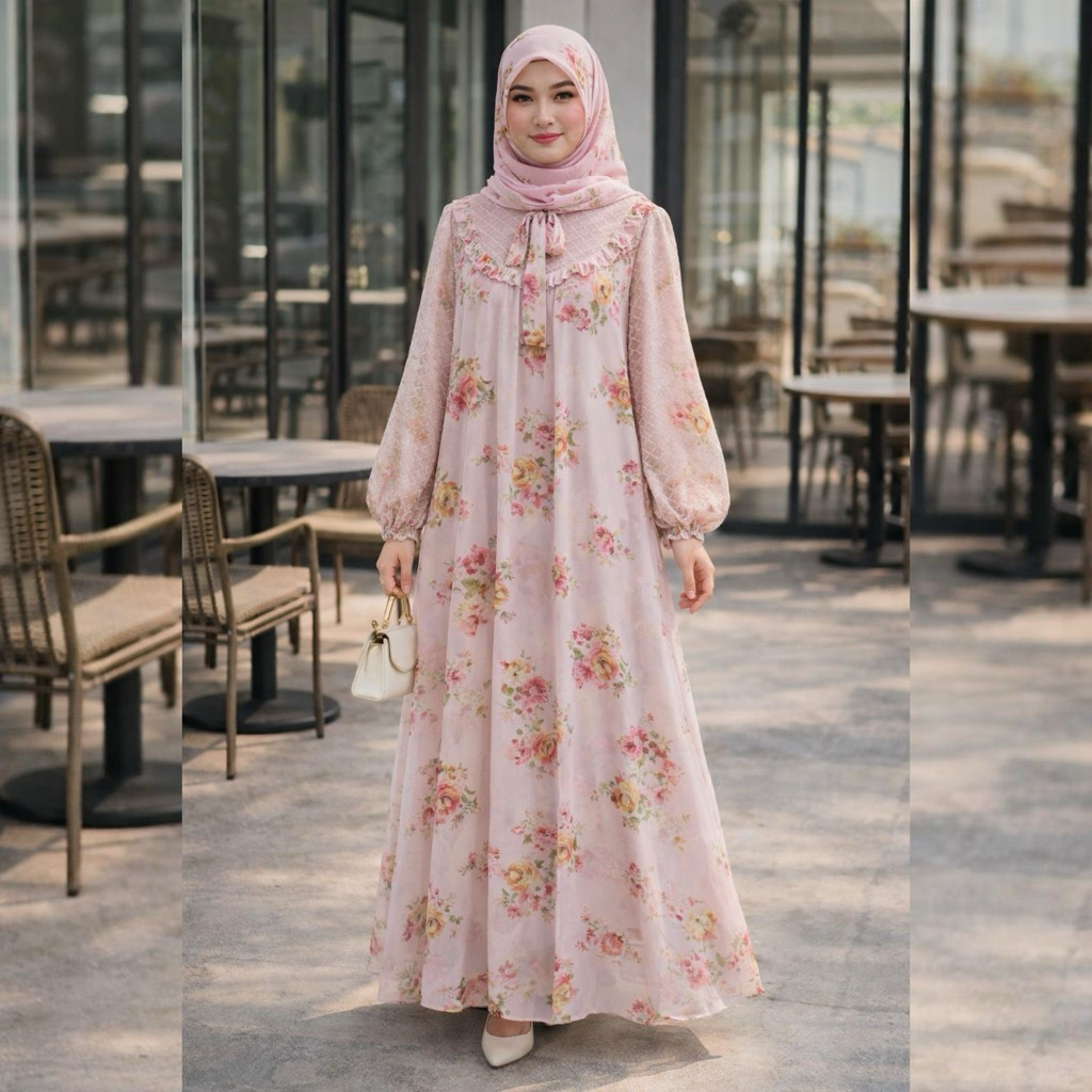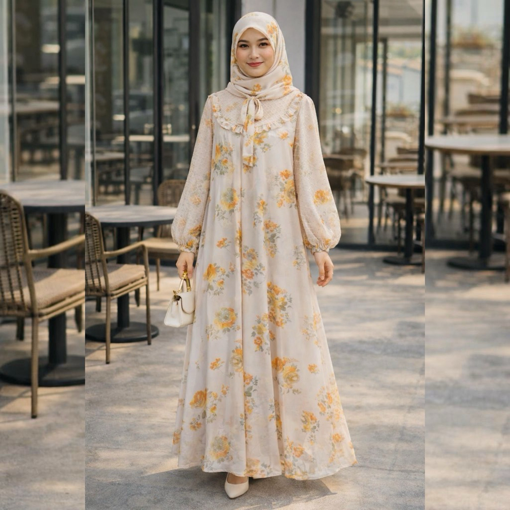 MAHINA SET HIJAB By ZIYA Square New Tille Premium Mix Ceruty Pleated Armany Babydoll Full Lining Abaya Set Hijab
