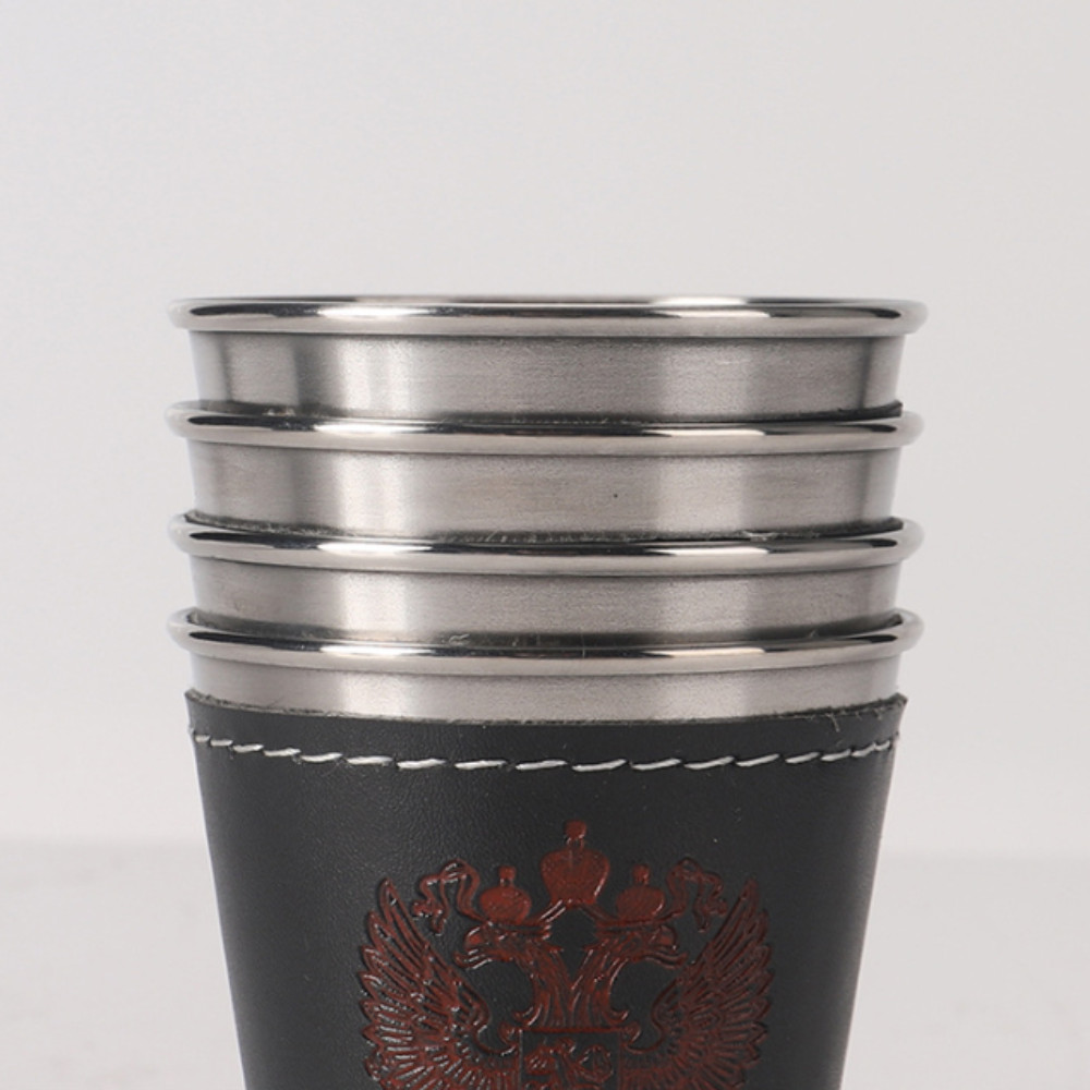ROXUL 4Pcs Outdoor Travel Cups Set, Portable with PU Leather Cup Sleeve Coffee Cup, High Quality Portable Design Stainless Steel Beer Cup Wine Drinking