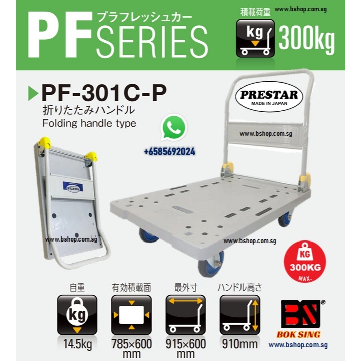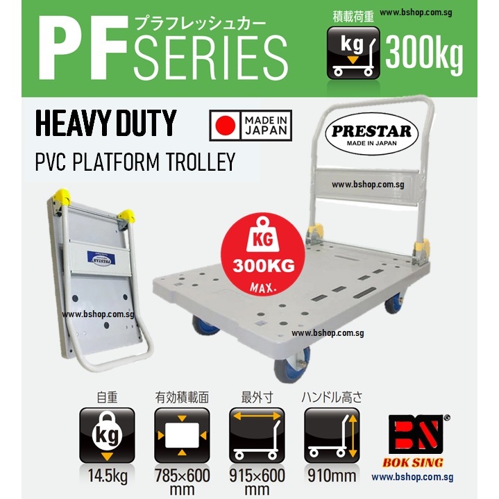 PRESTAR HEAVY DUTY PLATFORM TROLLEY 300KG / PVC HAND TRUCK 300KG/ PRESTAR CASTOR WHEEL- MADE IN JAPAN TROLLEY