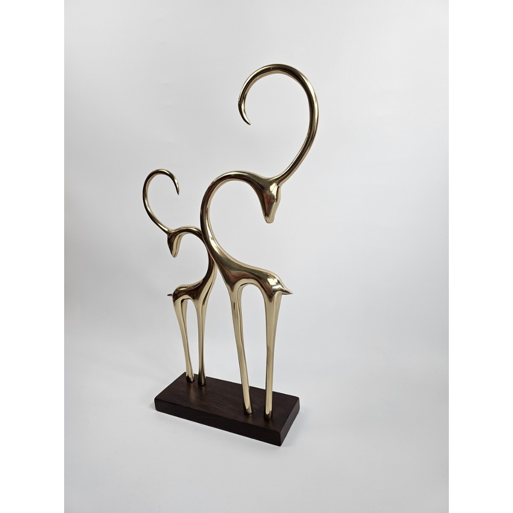 EHAIKA Deer Sculpture – Polished Gold Finish Aluminium With Walnut Finish Wood Base – Modern Living Room