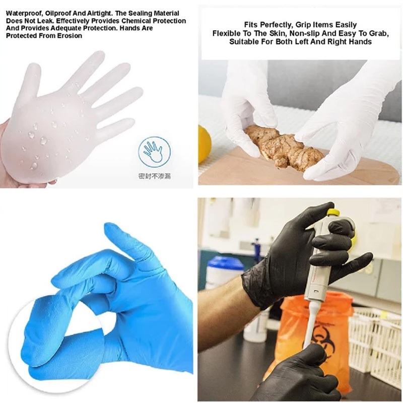 [SG Stocks] Disposable Nitrile Gloves Quality Powder-Free Non-sterile - 100 Pieces Per Box gloves Nitrile suitable for food handling Quality Powder-Free Waterproof and Oil-Resista