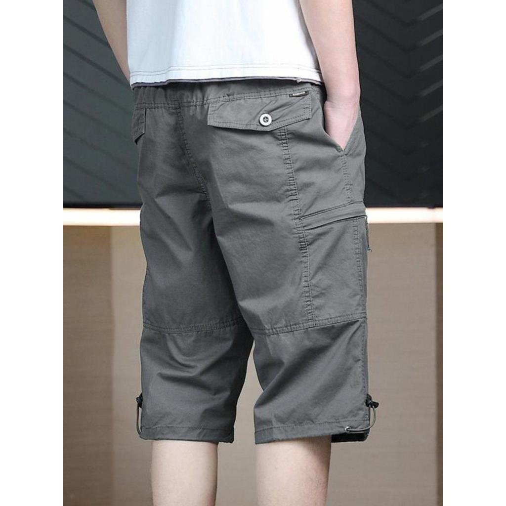 抽绳短裤男夏季多口袋直筒工装七分裤子男士潮牌宽松大码纯色中裤Drawstring Shorts Men's Summer Multi-Pocket Straight Tooling Seven20260105