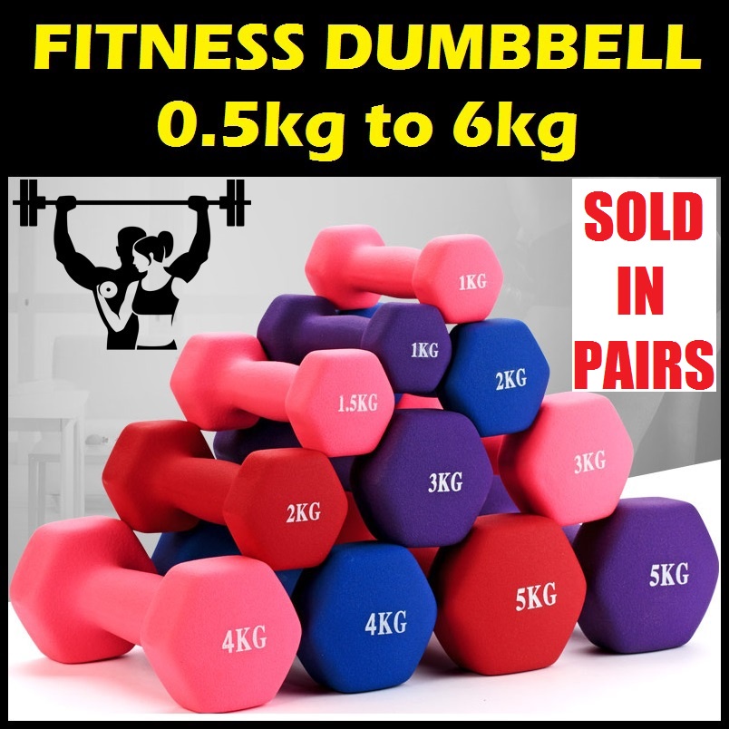 SOLD IN PAIRS! Neoprene Dumbbell 0.5kg to 6kg Fitness Yoga Exercise Workout Home Gym Weights NonSlip