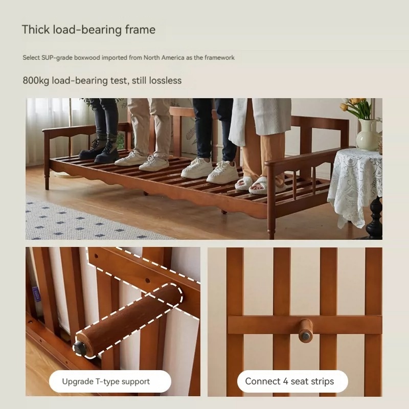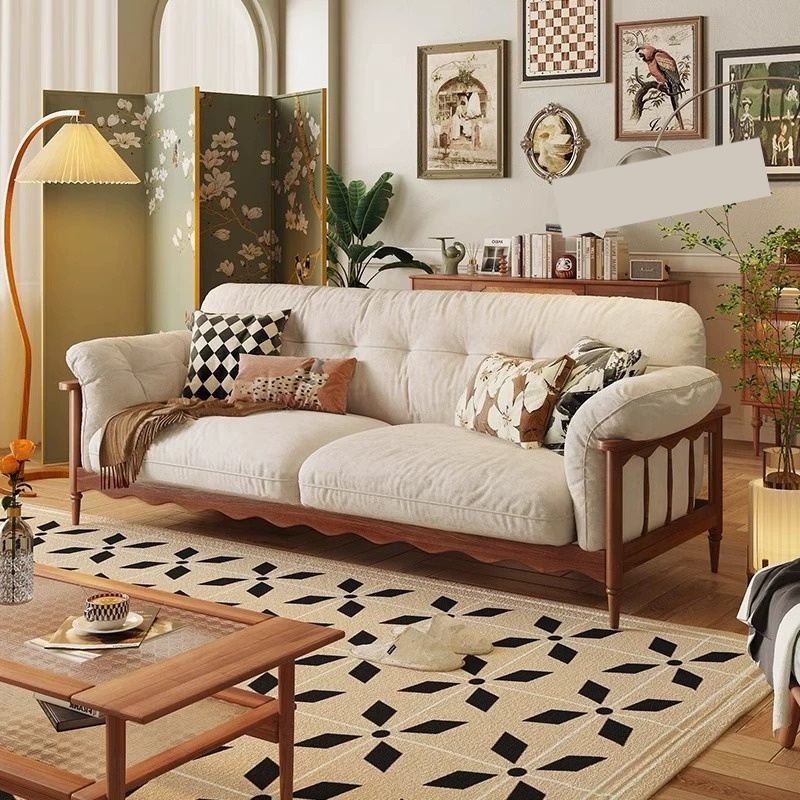 【Pre-order】French solid wood sofa, fabric cloud, three-seater small house, American log antique cream inline sofa