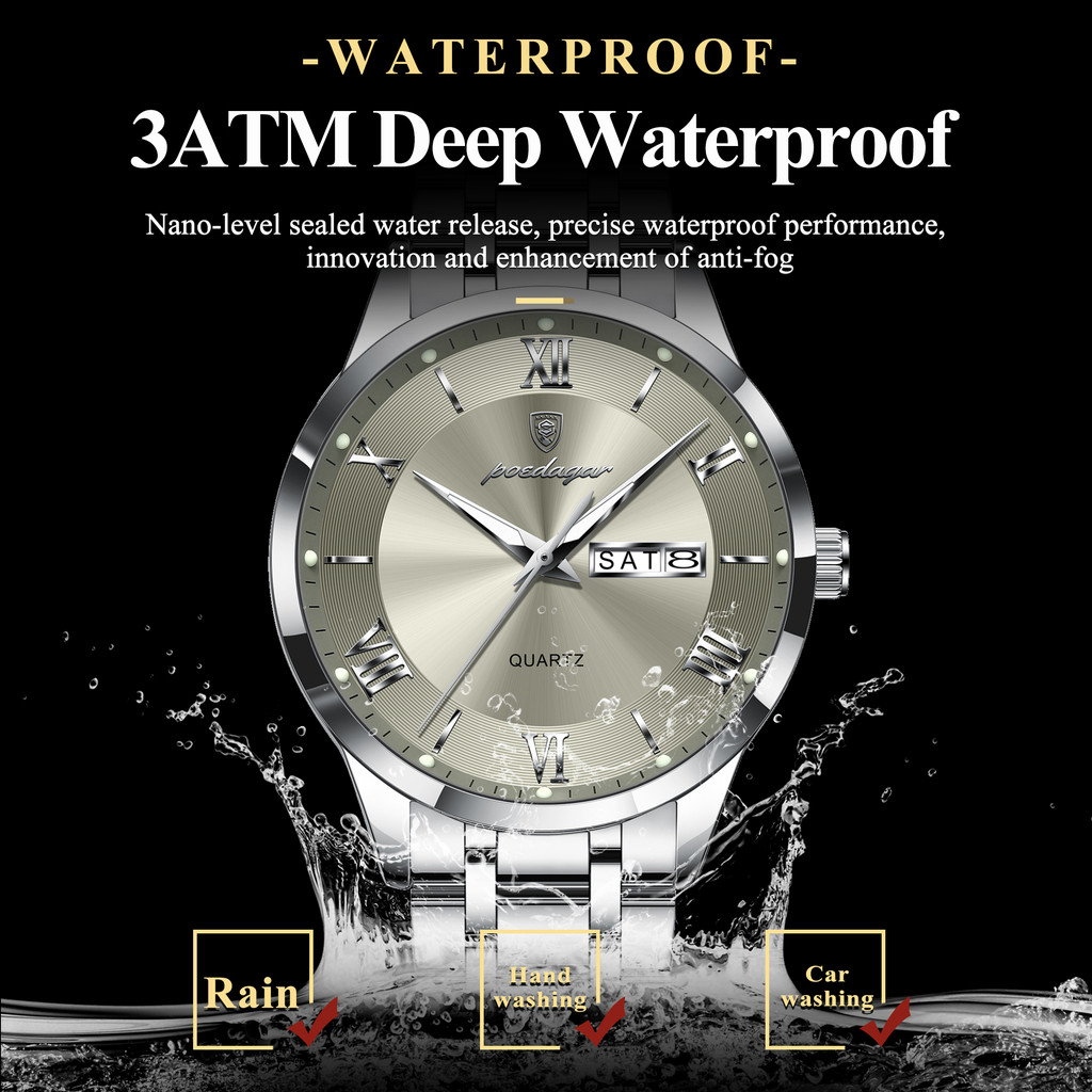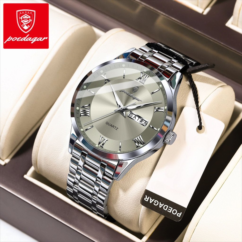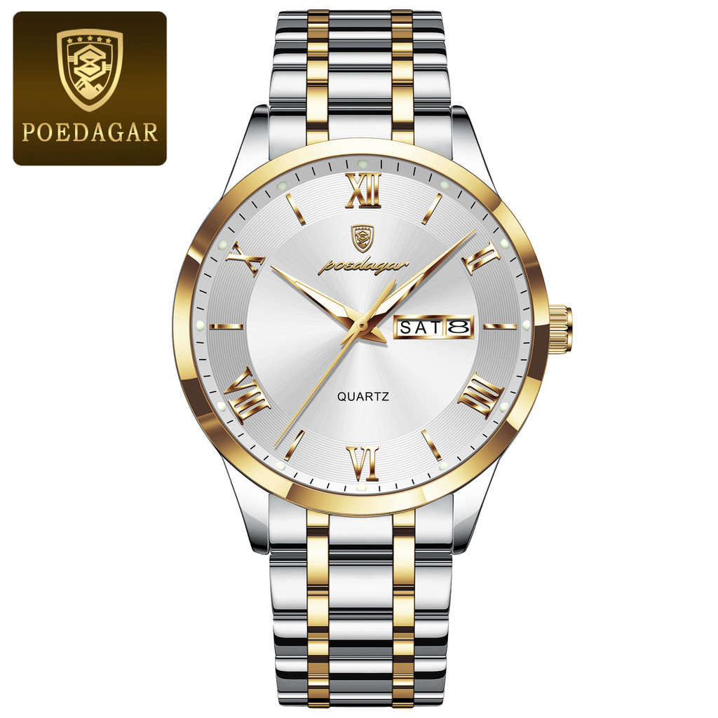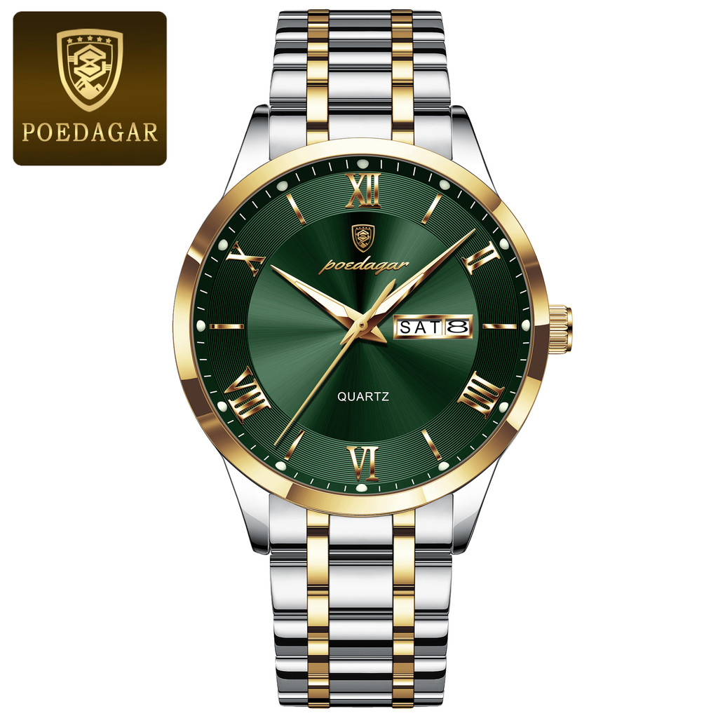 POEDAGAR Fashionable waterproof luminous dating sports dual calendar dating Roman digital men's quartz watch