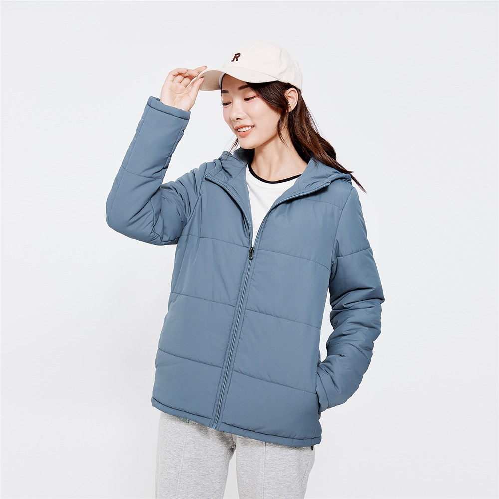 GIORDANO WOMEN Solid color zip front padded hooded jacket 05372731