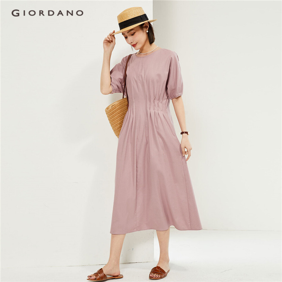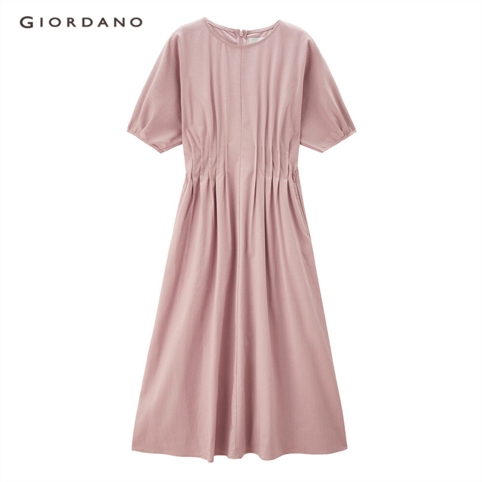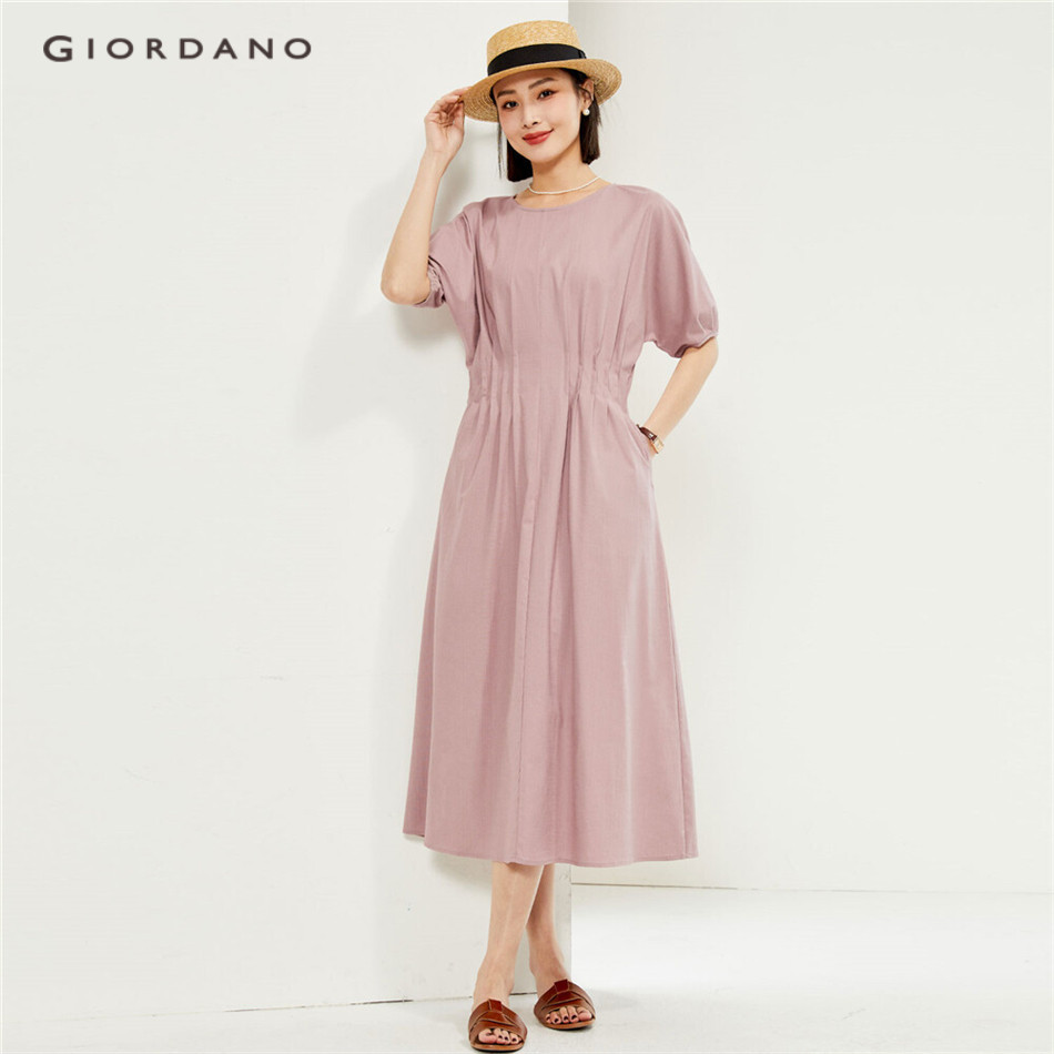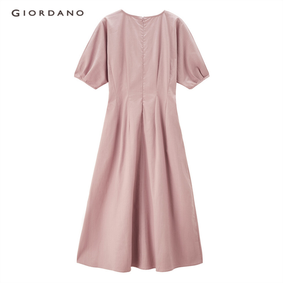 GIORDANO WOMEN Tencel collect waist french sleeve dress 13464229