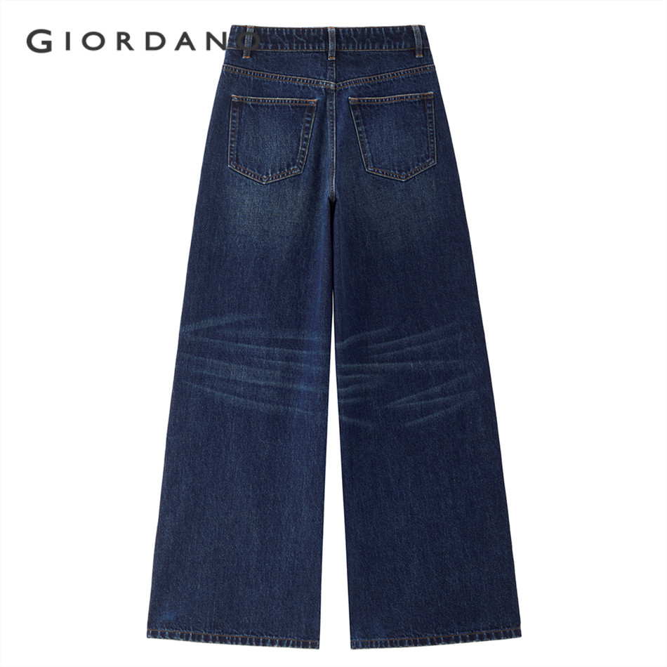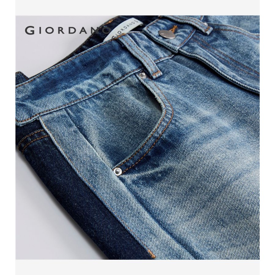 GIORDANO WOMEN Contrasting panel high waist denim jeans 18415513