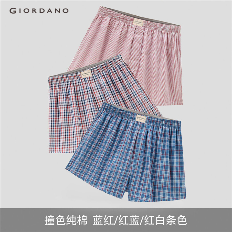 GIORDANO MEN 3-Pack 100% cotton contrasting boxers 18174139