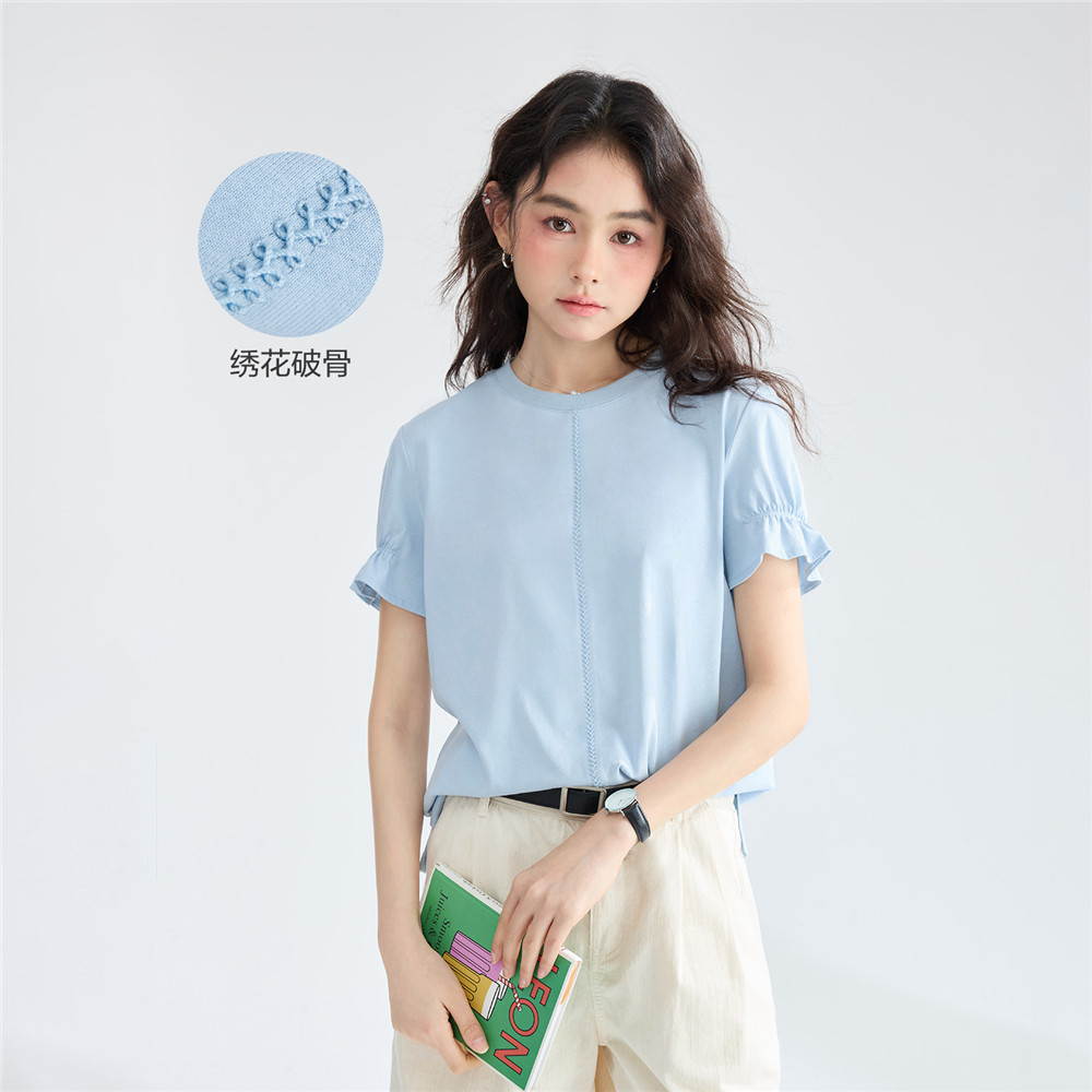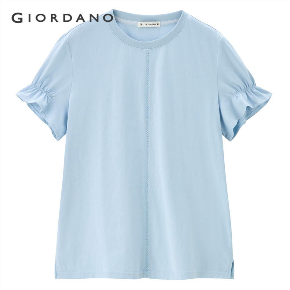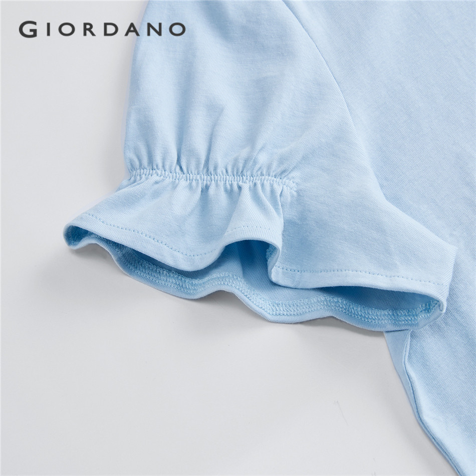 GIORDANO WOMEN 100% Cotton embroidery bud short sleeve tee 18325505