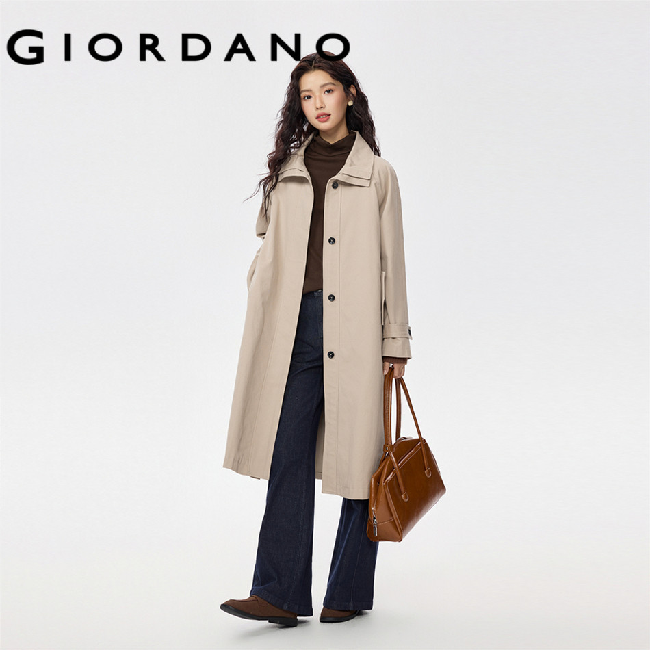 GIORDANO WOMEN 100% Cotton big cllar mid-length coat 05375677