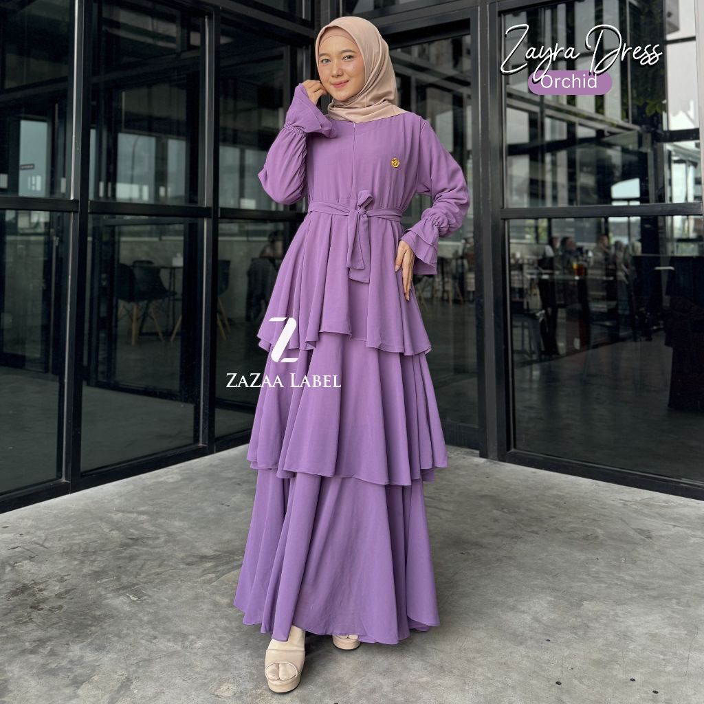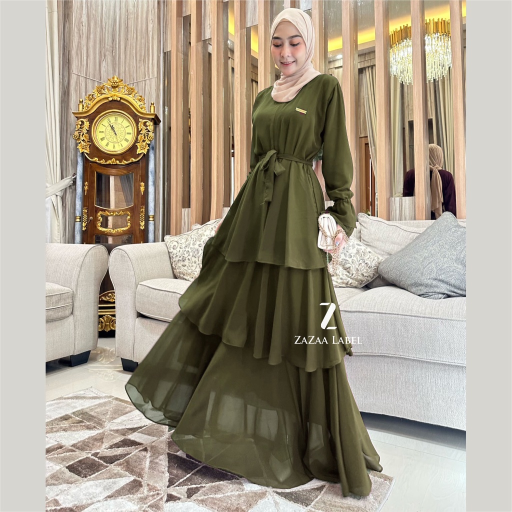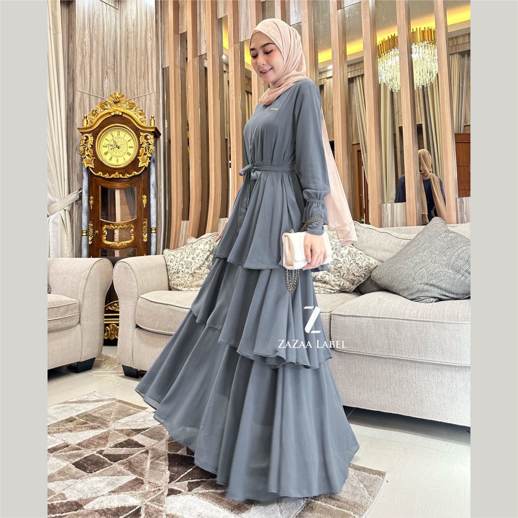 Zazaa Label - Zayra Maxi Dress for Muslim Women, ceruty babydoll, full Lining, Luxurious, Nursing (Gamis only), non-Hijab Gamis Modern Raya Dress