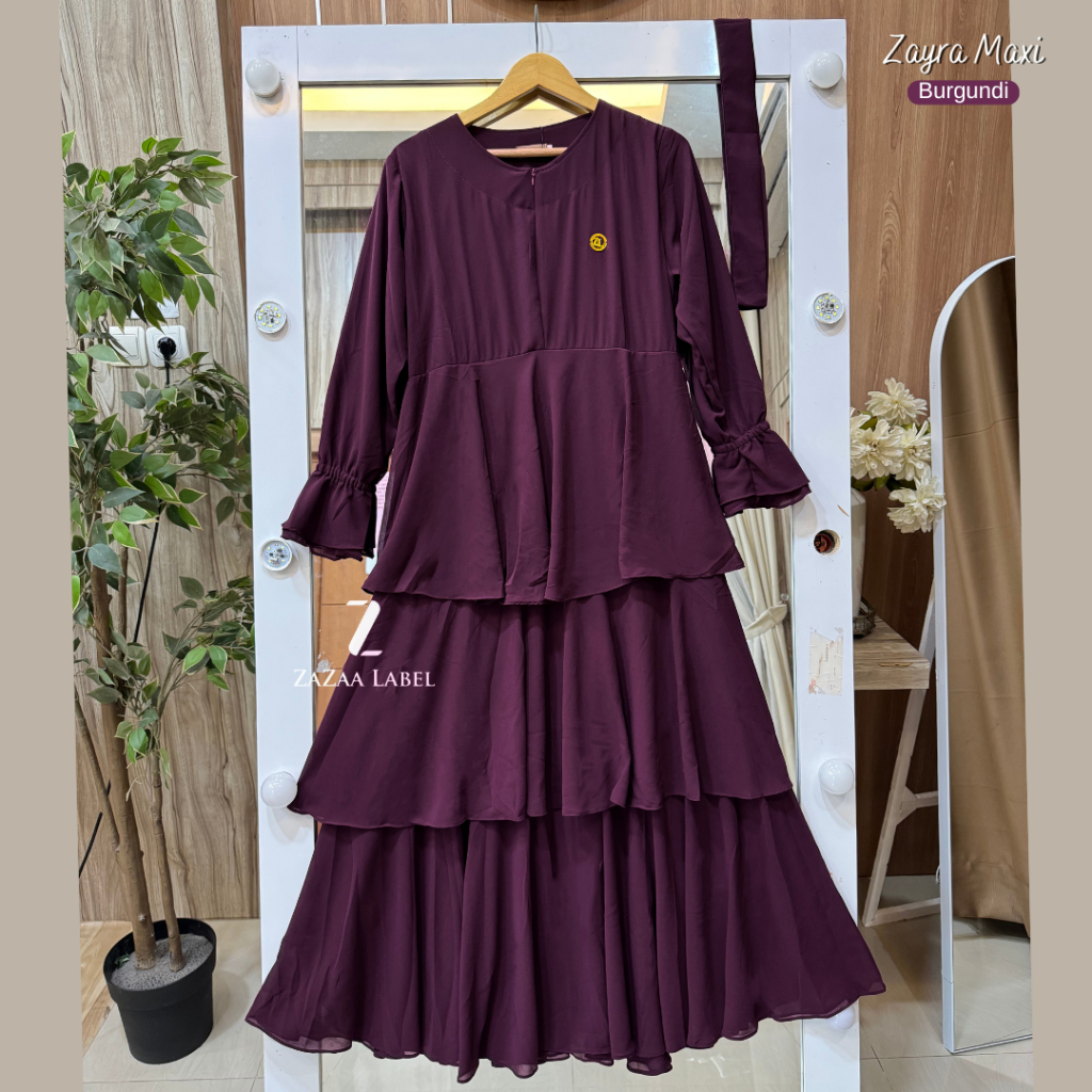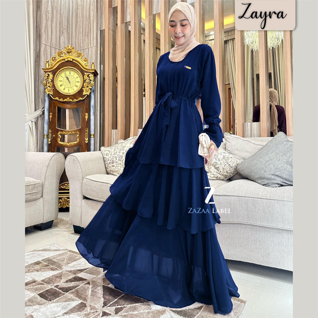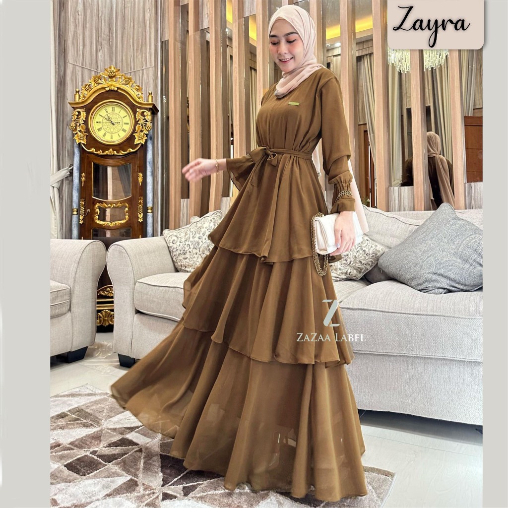 Zazaa Label - Zayra Maxi Dress for Muslim Women, ceruty babydoll, full Lining, Luxurious, Nursing (Gamis only), non-Hijab Gamis Modern Raya Dress