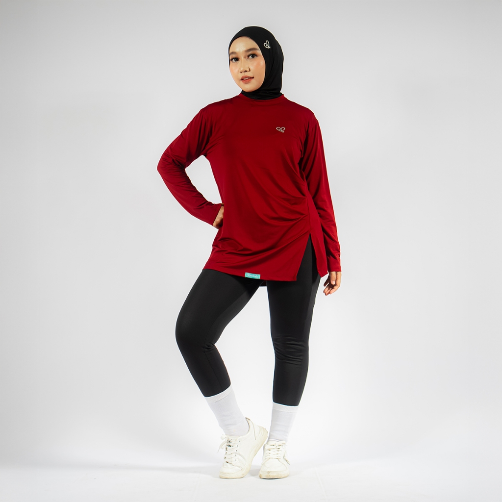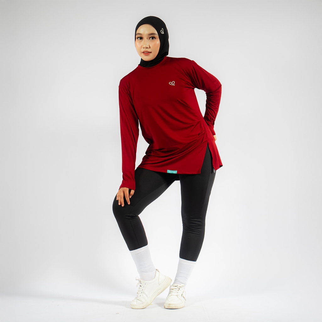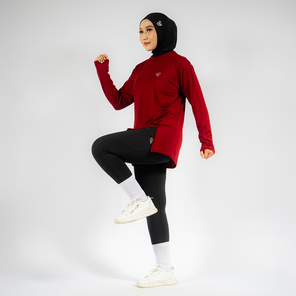 Elikah One Set Elgiva Maroon Muslimah Running Suit Sportwear Anti-Odor & Cool