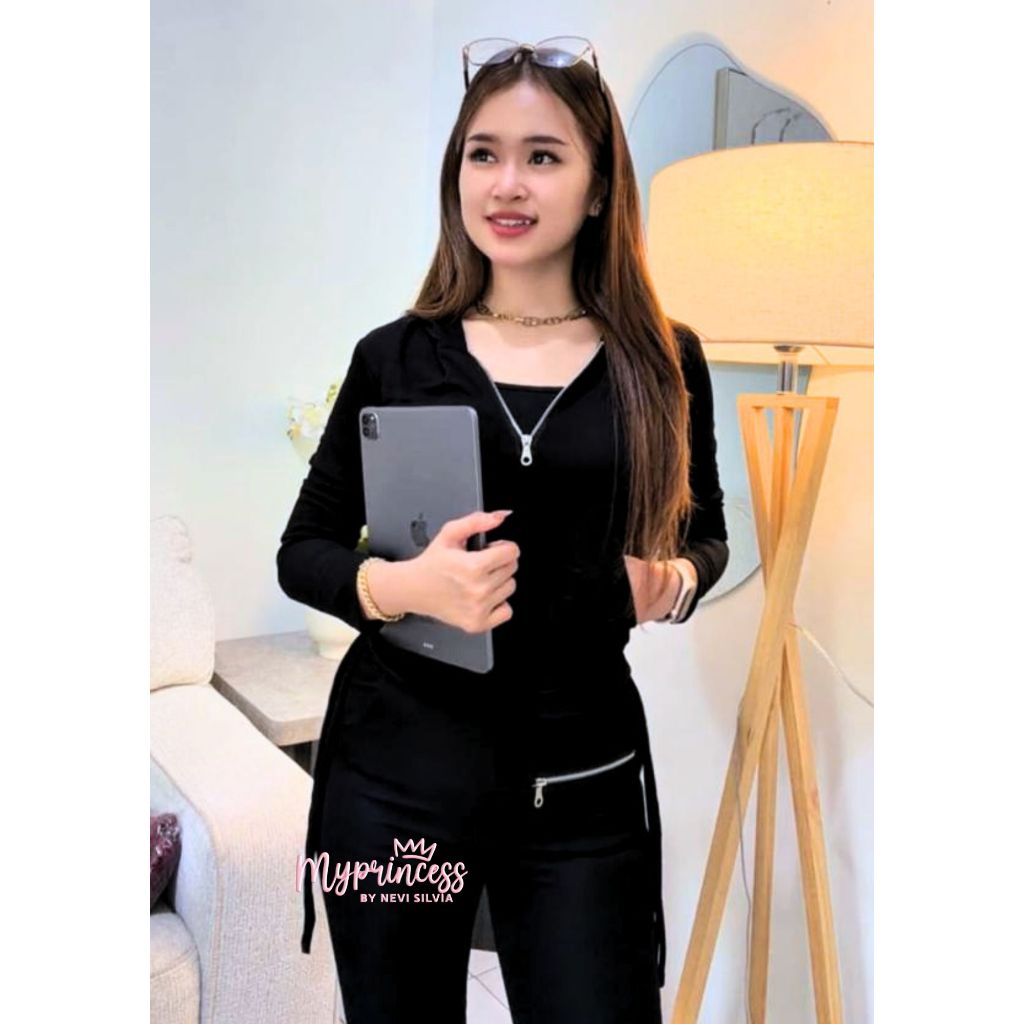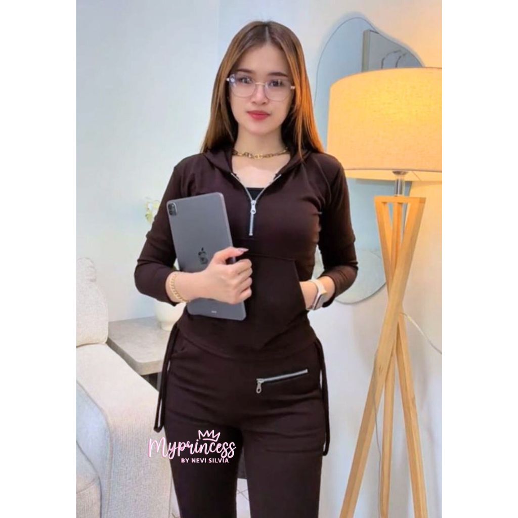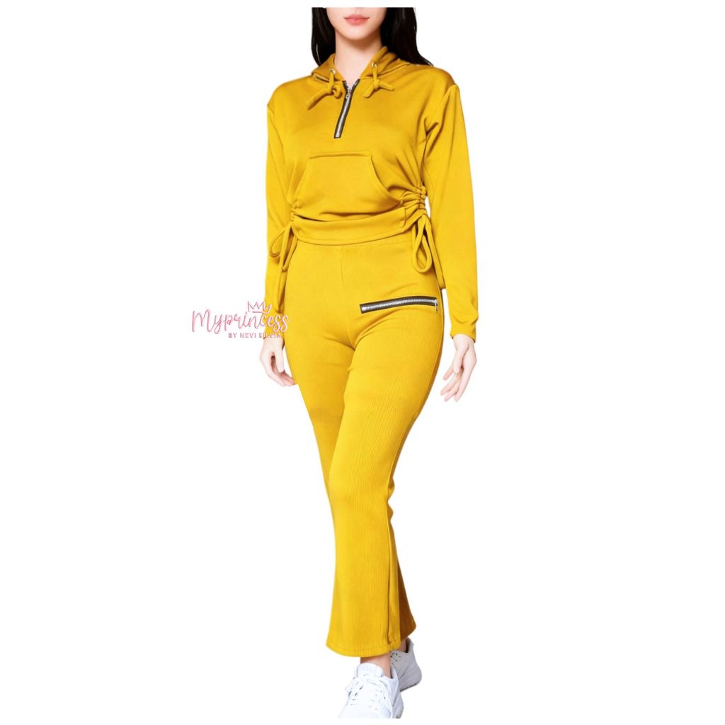 ELLEA ONESET HOODIE ZIPER KNIT WOMEN'S SUIT LONG SLEEVE ONE SET KNIT BUSUI FRIENDLY