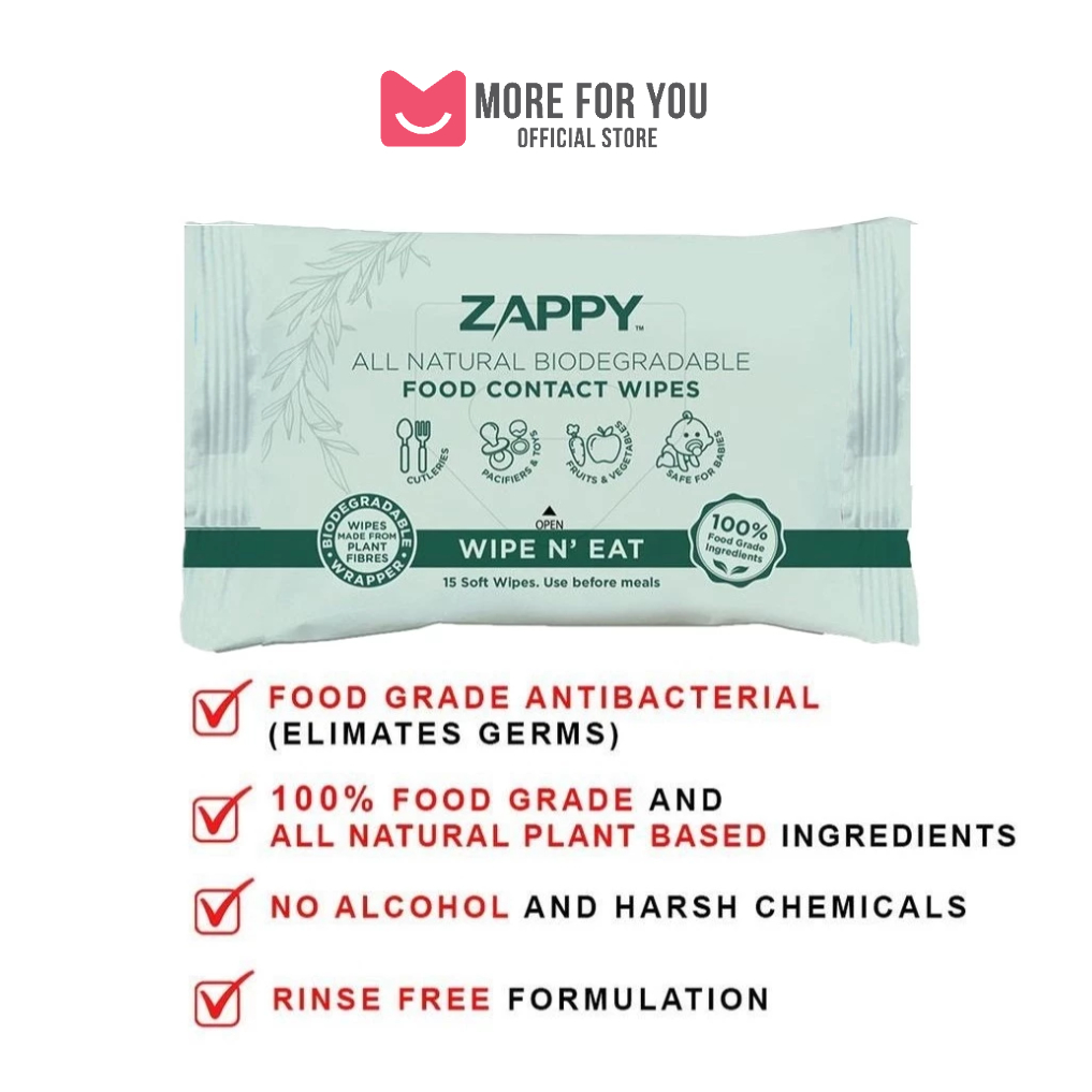 💕MORE FOR YOU💕 Zappy Baby Wipes All Natural Food Contact 15’s (36 packets)