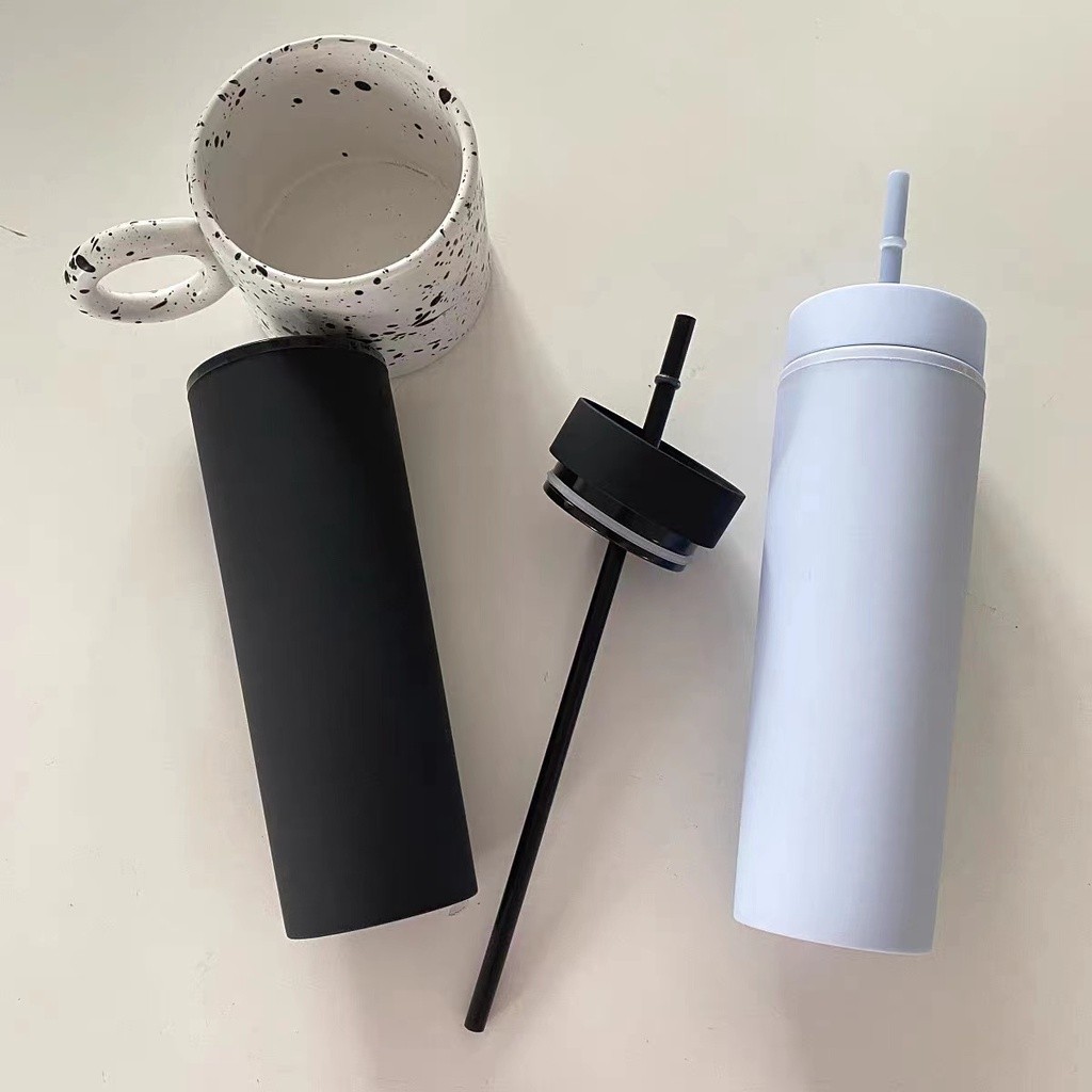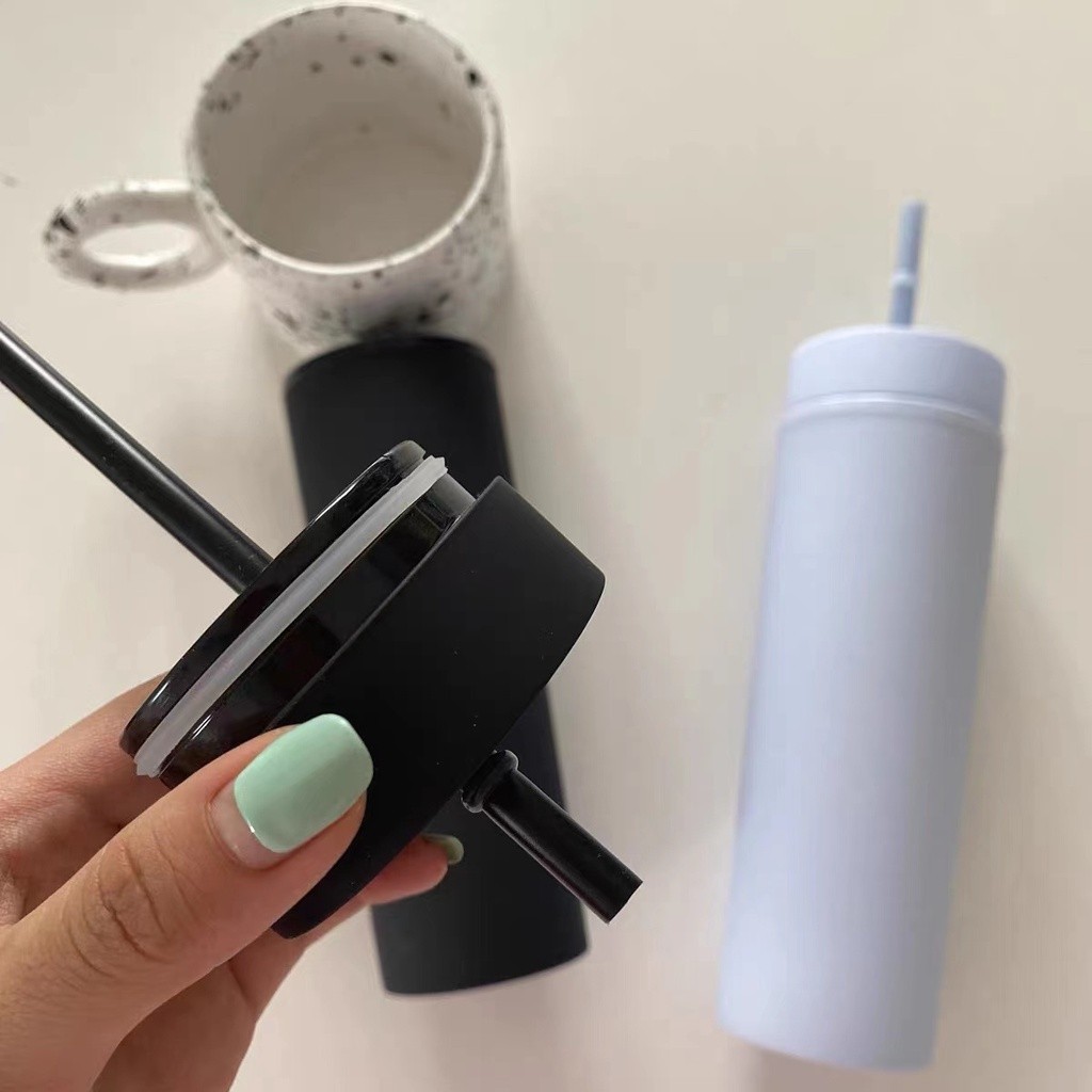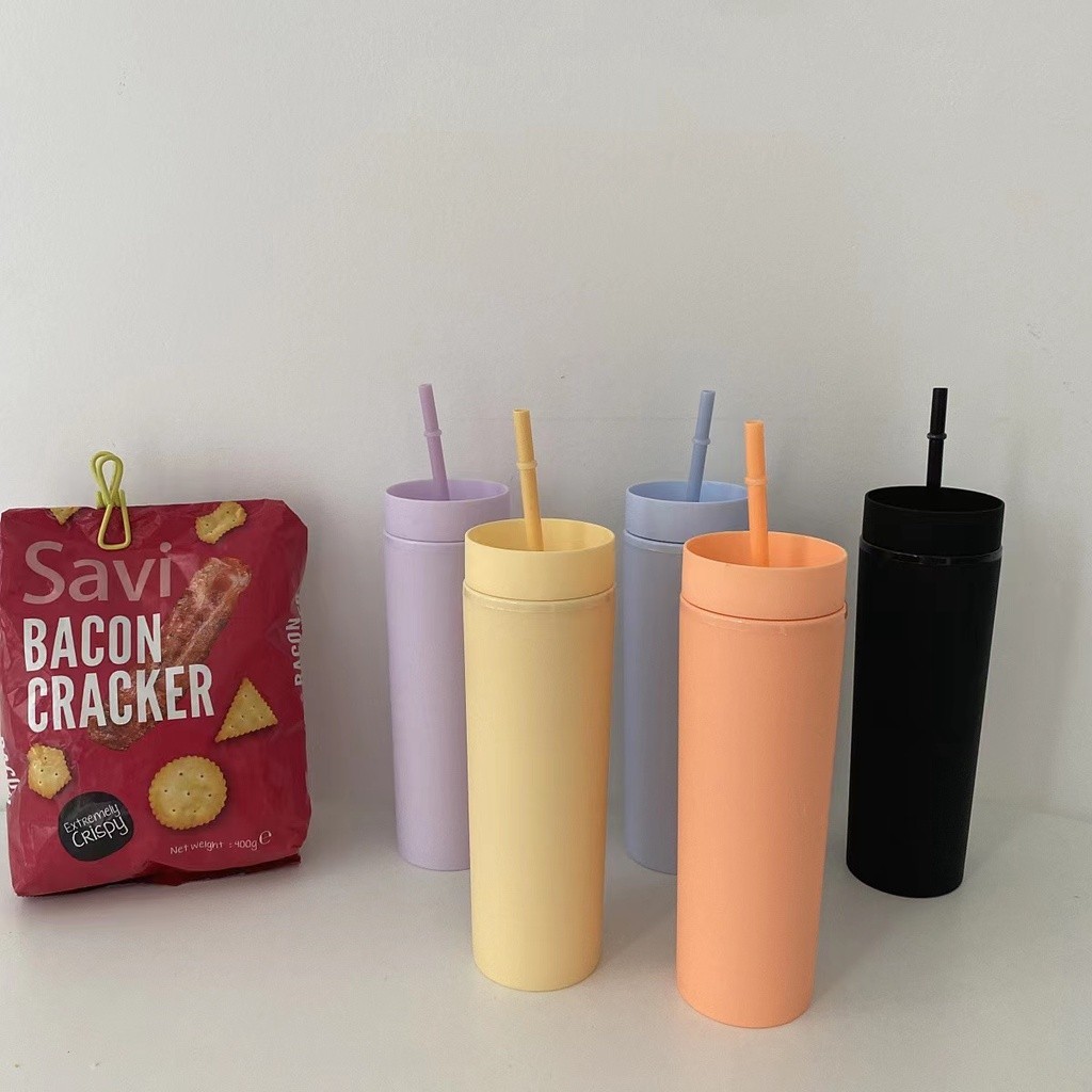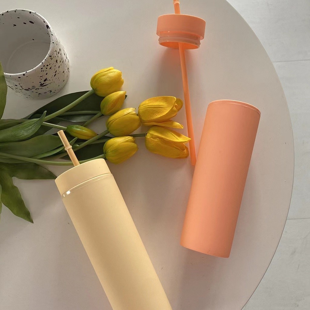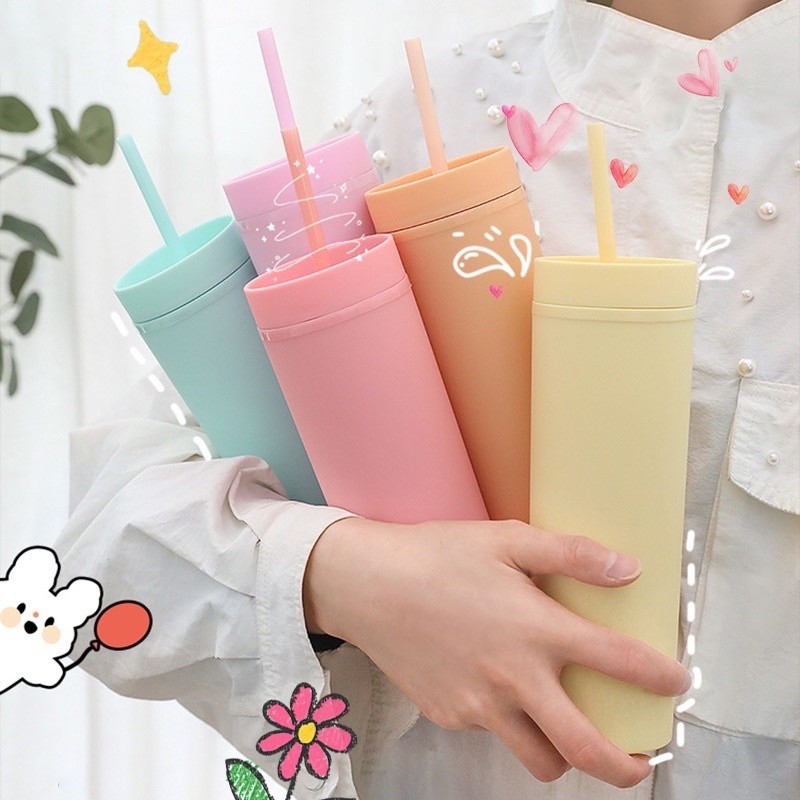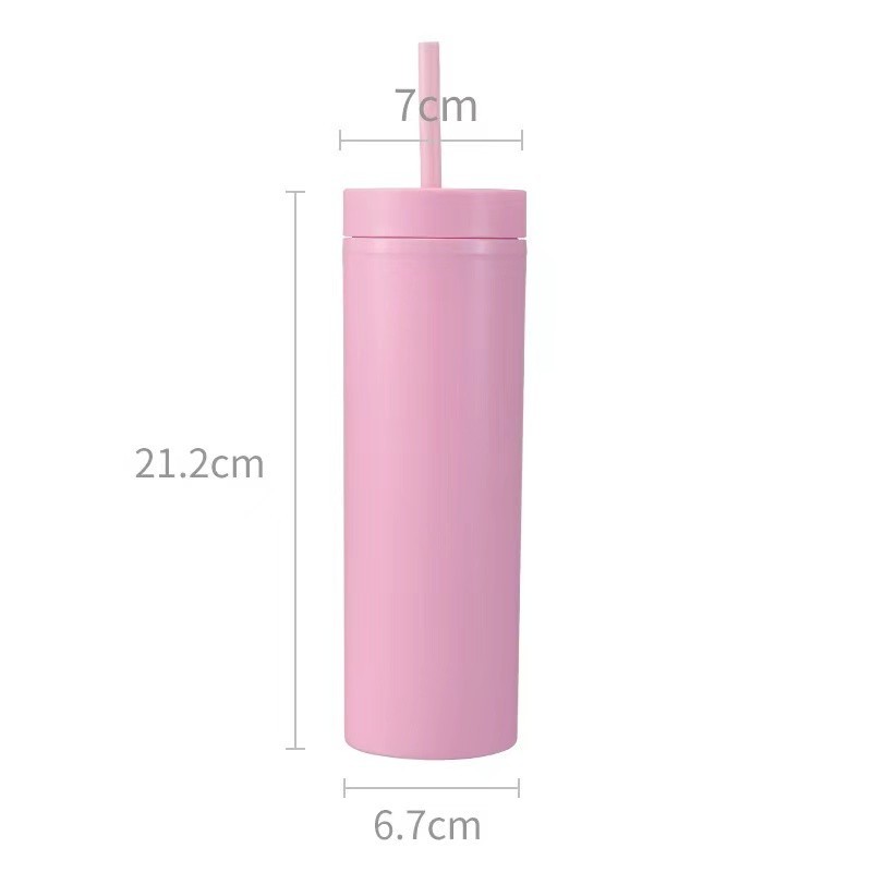 Outdoor Water Drinking Cup Double-layer Water Bottle Candy Color Straw Cup Frosted Water Cup with Straw Tumbler 450ml