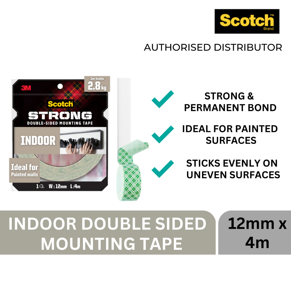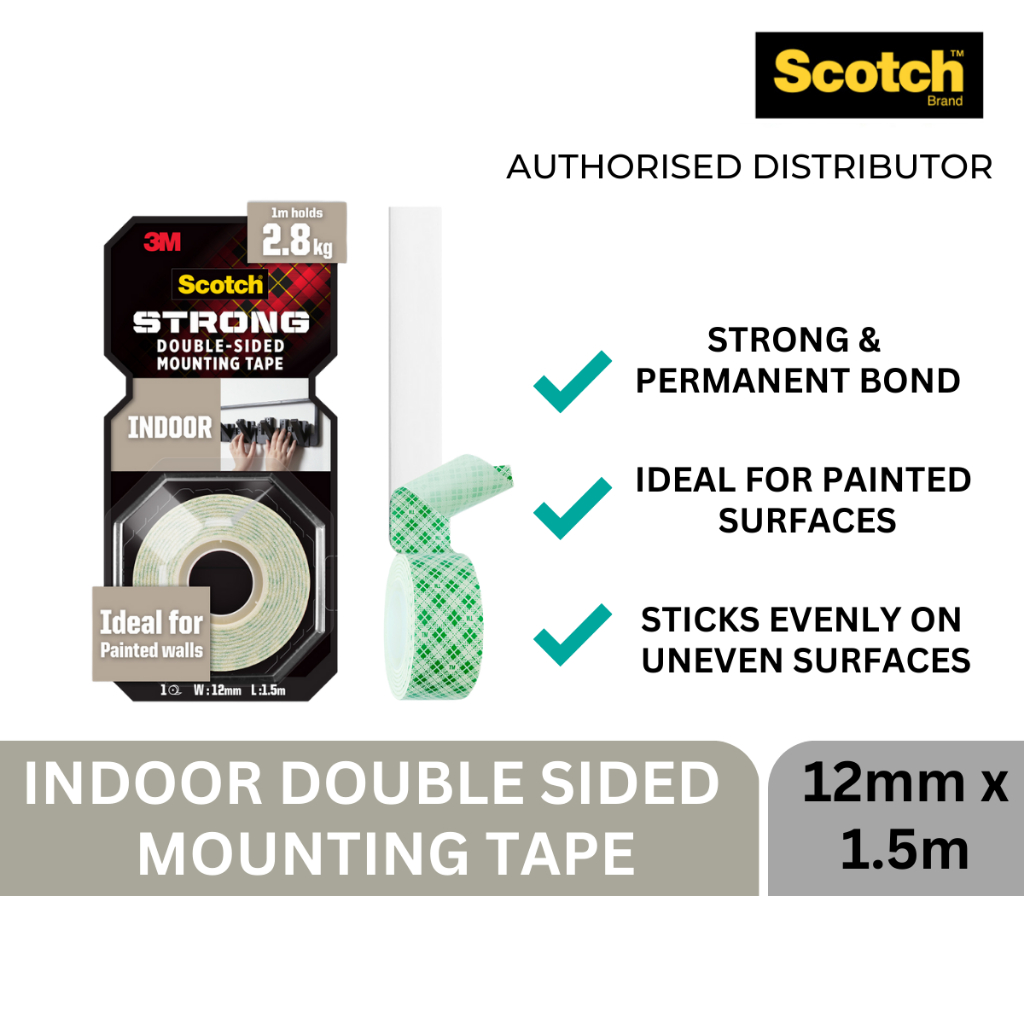 3M Scotch Indoor Double Sided Mounting Tape 12 mm x 1.5 m / 12 mm x 4 m