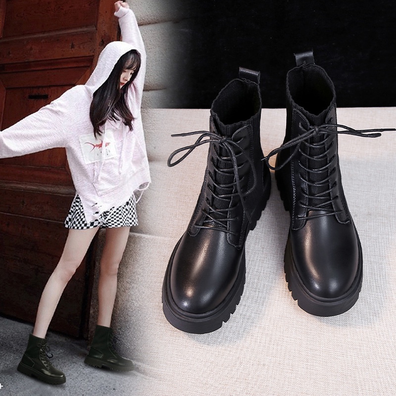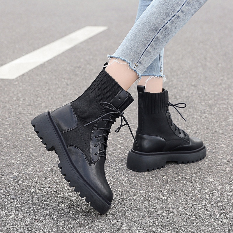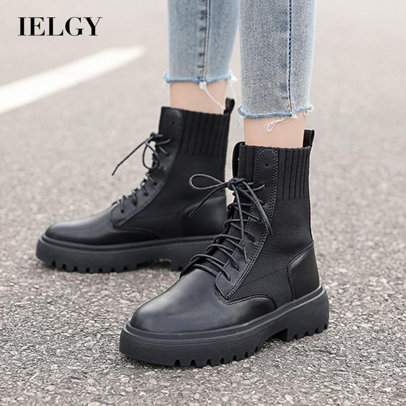 IELGY trendy Women's Black Martin Ankle Boots With 4 Cm Height Heels