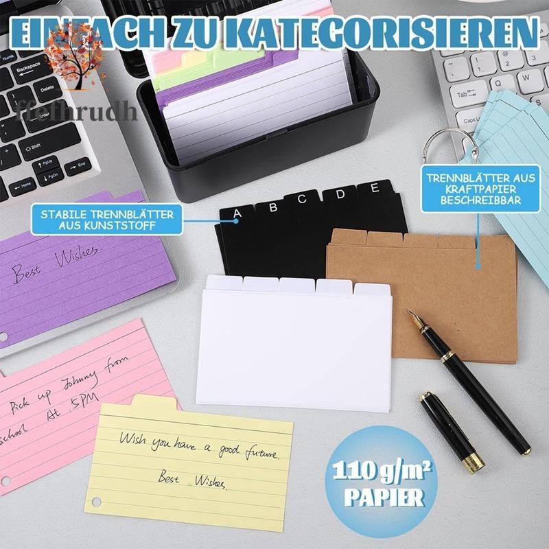 Index Card Holder Set,Index Box with 230 Assorted Flashcards, Colourful Lined, 6 Rings and Stickers Perfect for School ffefhrudh