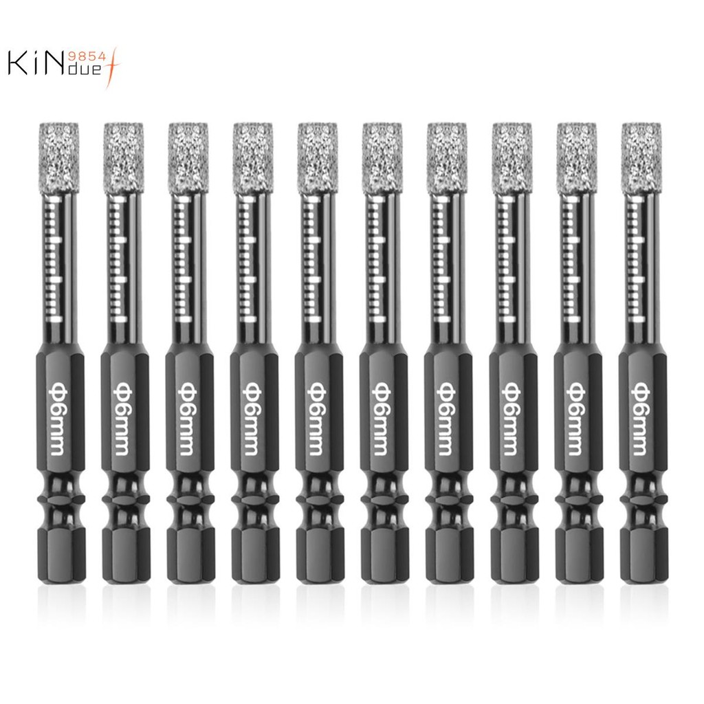 10Pcs Diamond Drill Bits,6mm Dry Diamond Core Drill Bit Set for Ceramic,,Tile,Glass,Marble,Brick,Stone
