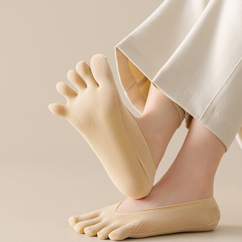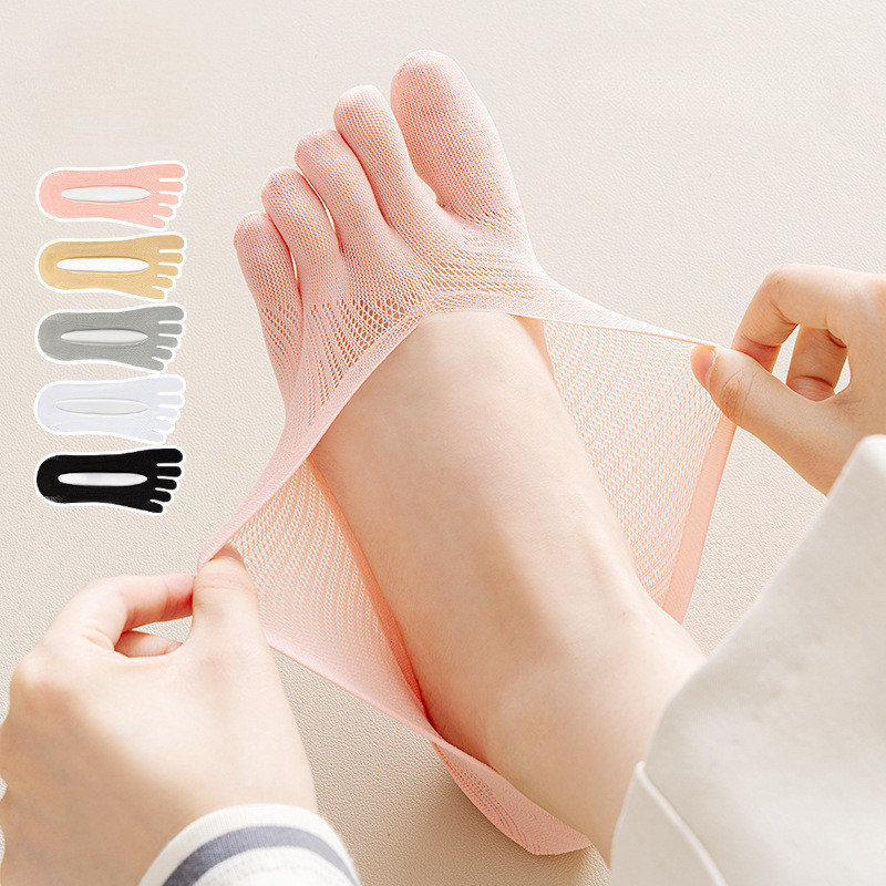Cute Five-finger Boat Socks Summer Thin Split Toe Socks Silicone Non-slip Shallow Mouth Invisible High Heels Socks