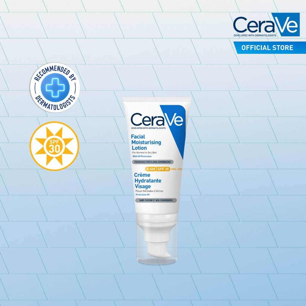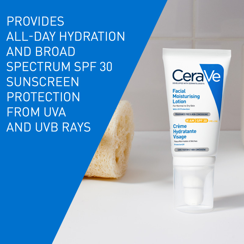 CeraVe AM Facial Moisturiser Lotion with SPF30 52ml | Day Moisturiser with Sunscreen and Ceramides