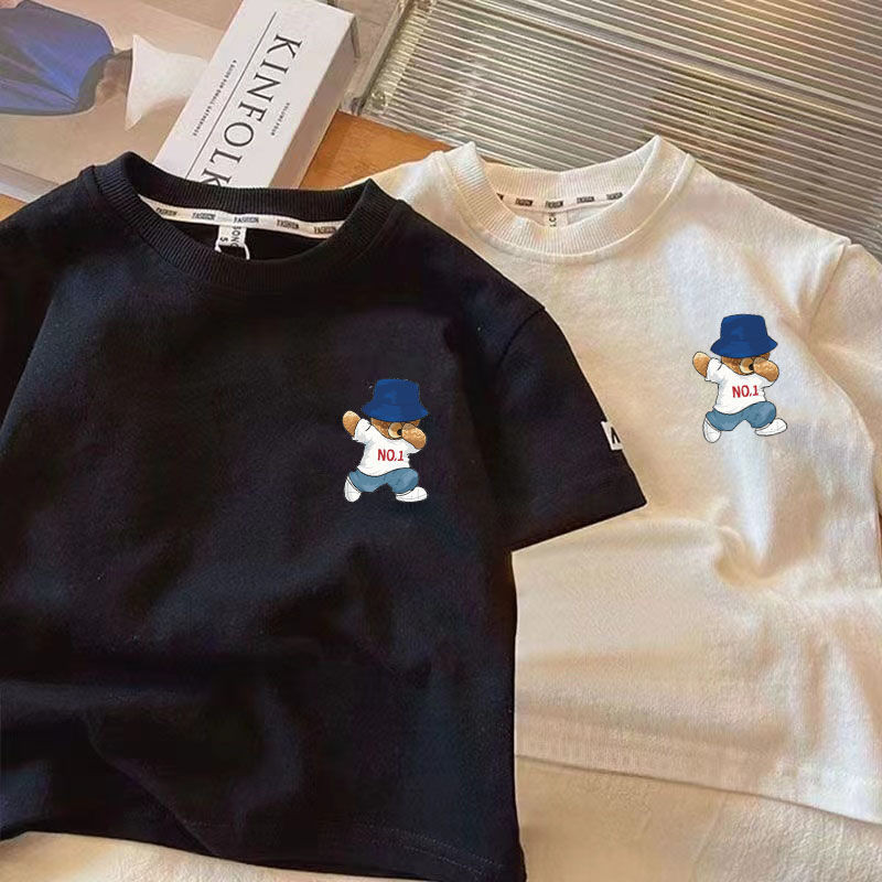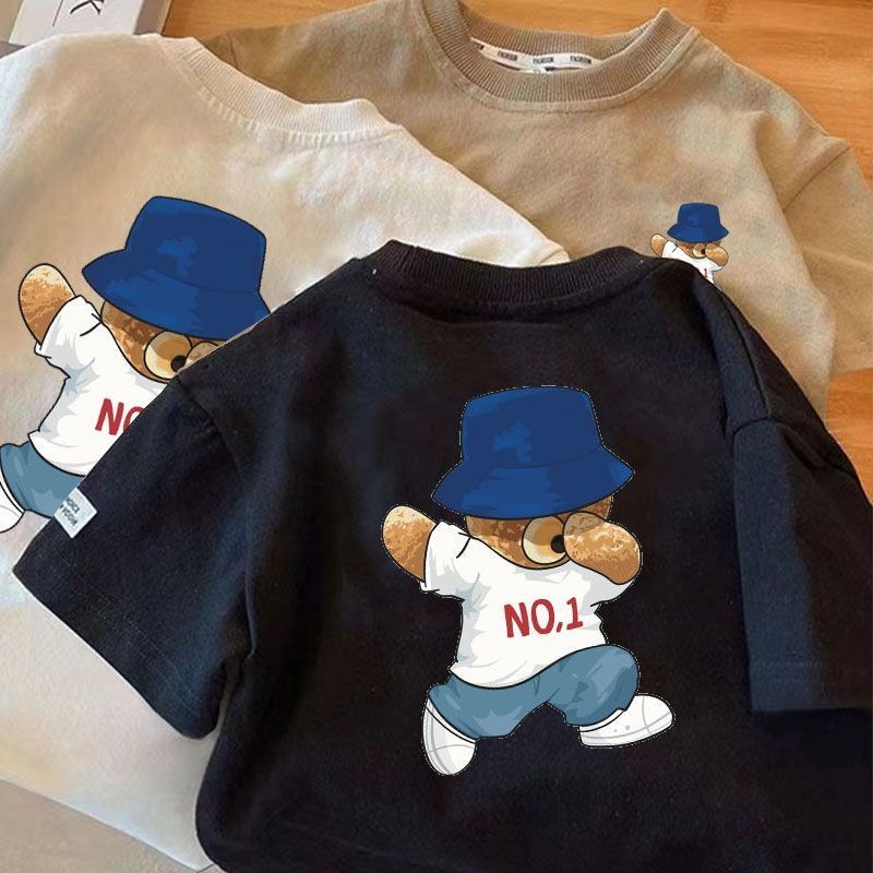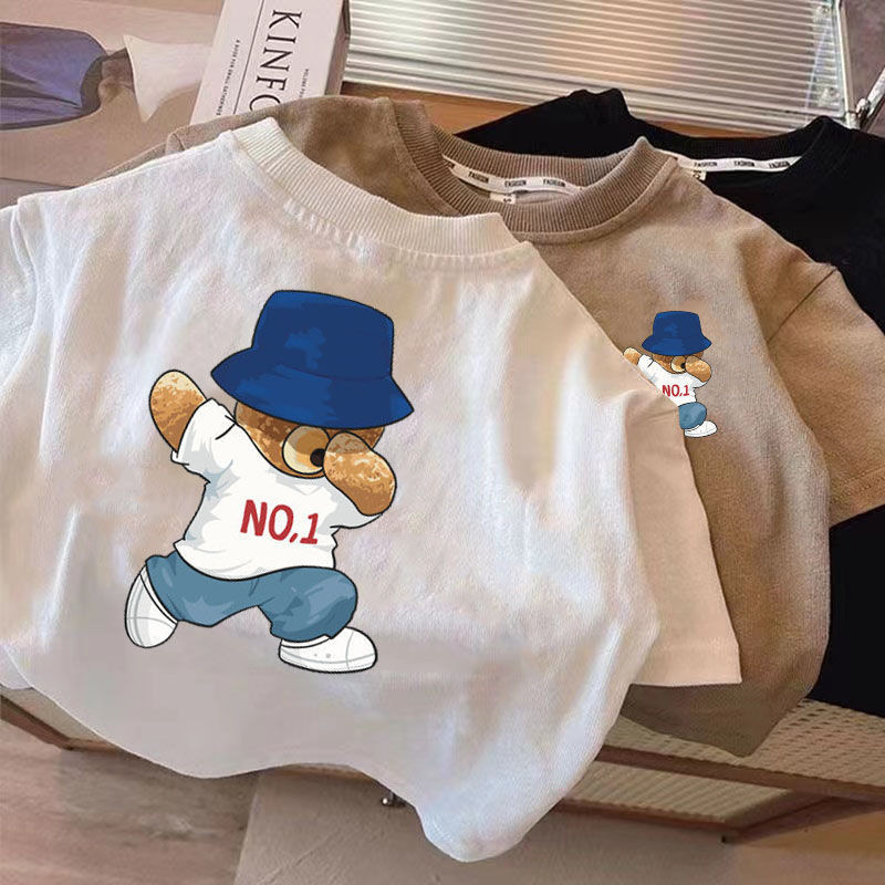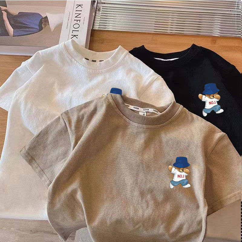 [Boy Top] (16-37kg) Kid Boy Cotton T Shirt Short Sleeves Tshirt Korean Style Bear Printed Kid Wear