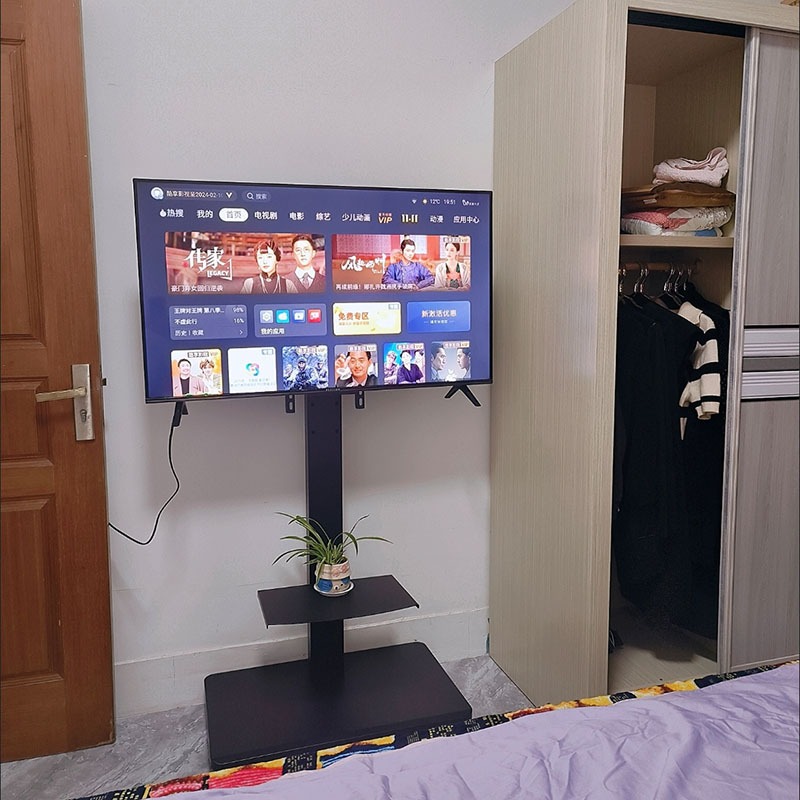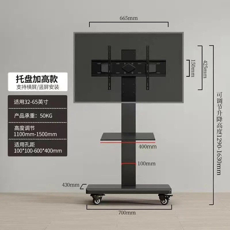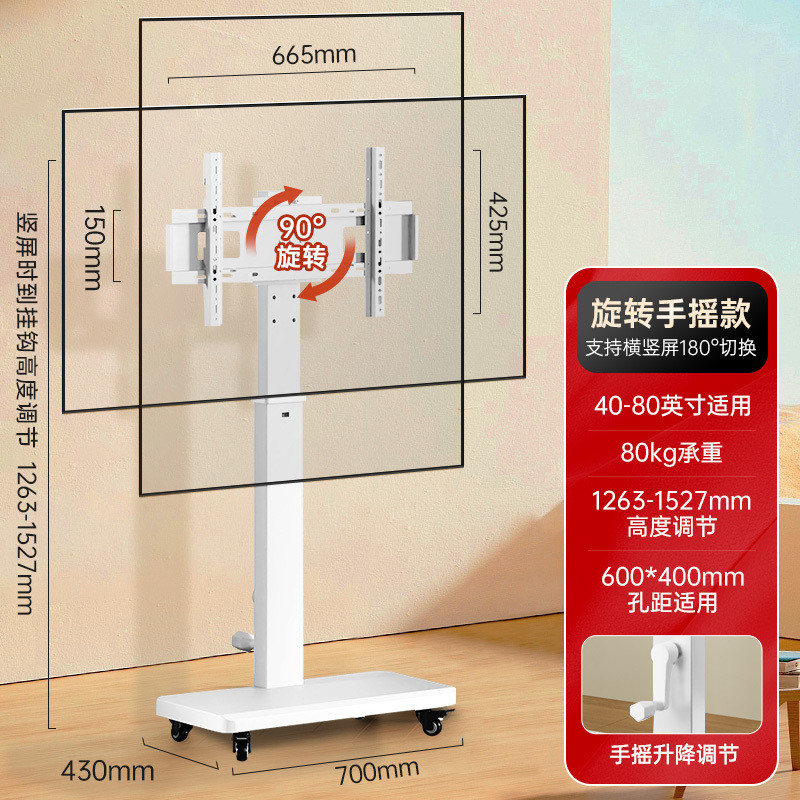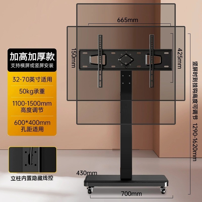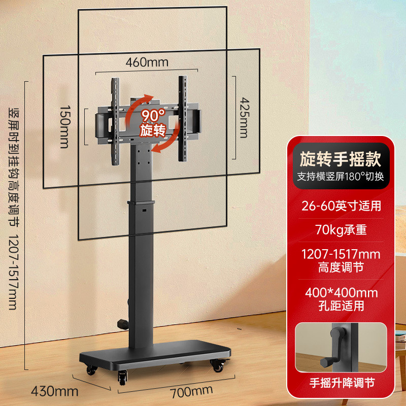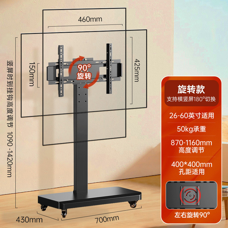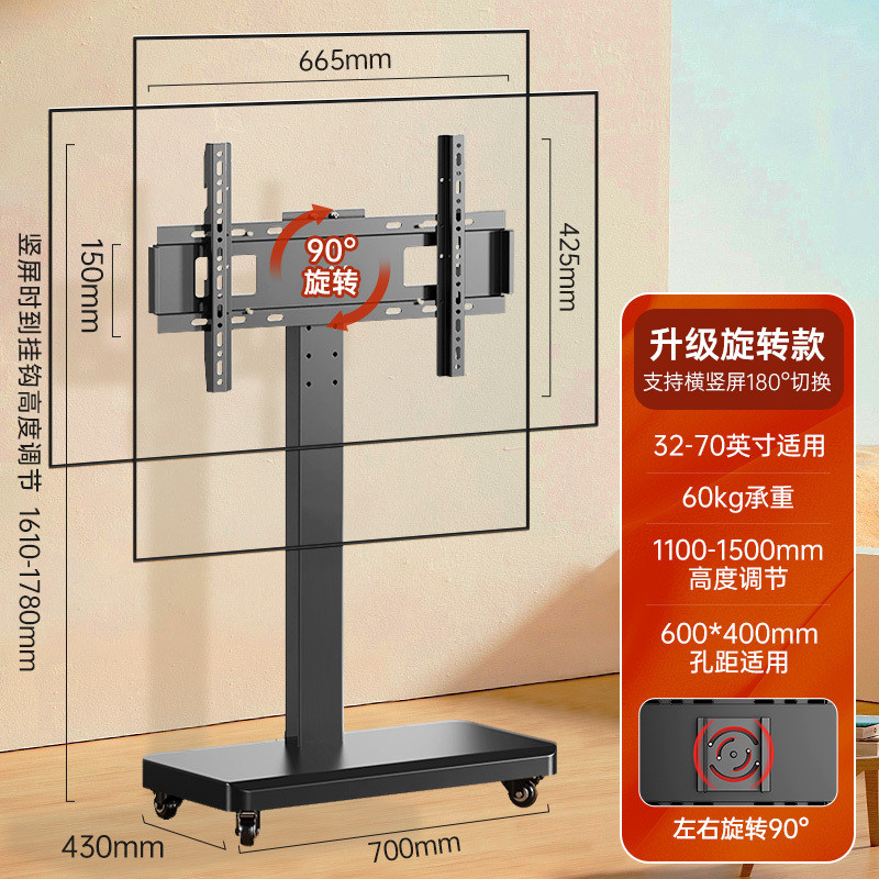 Universal TV Bracket Floor Trolley Movable Rotating Live Vertical Screen Rack Punch-Free with Wheels