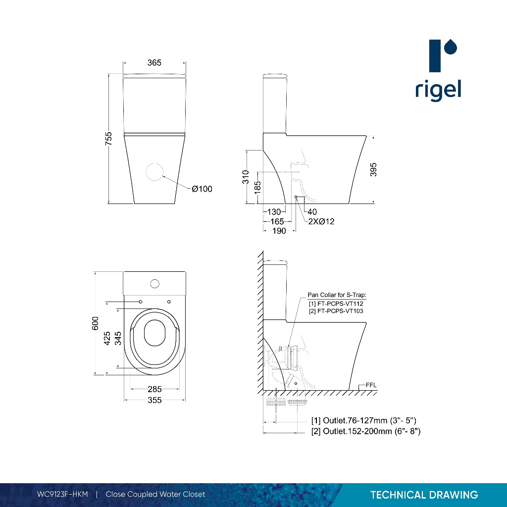 RIGEL Zerorim Toilet Bowl WC9123F