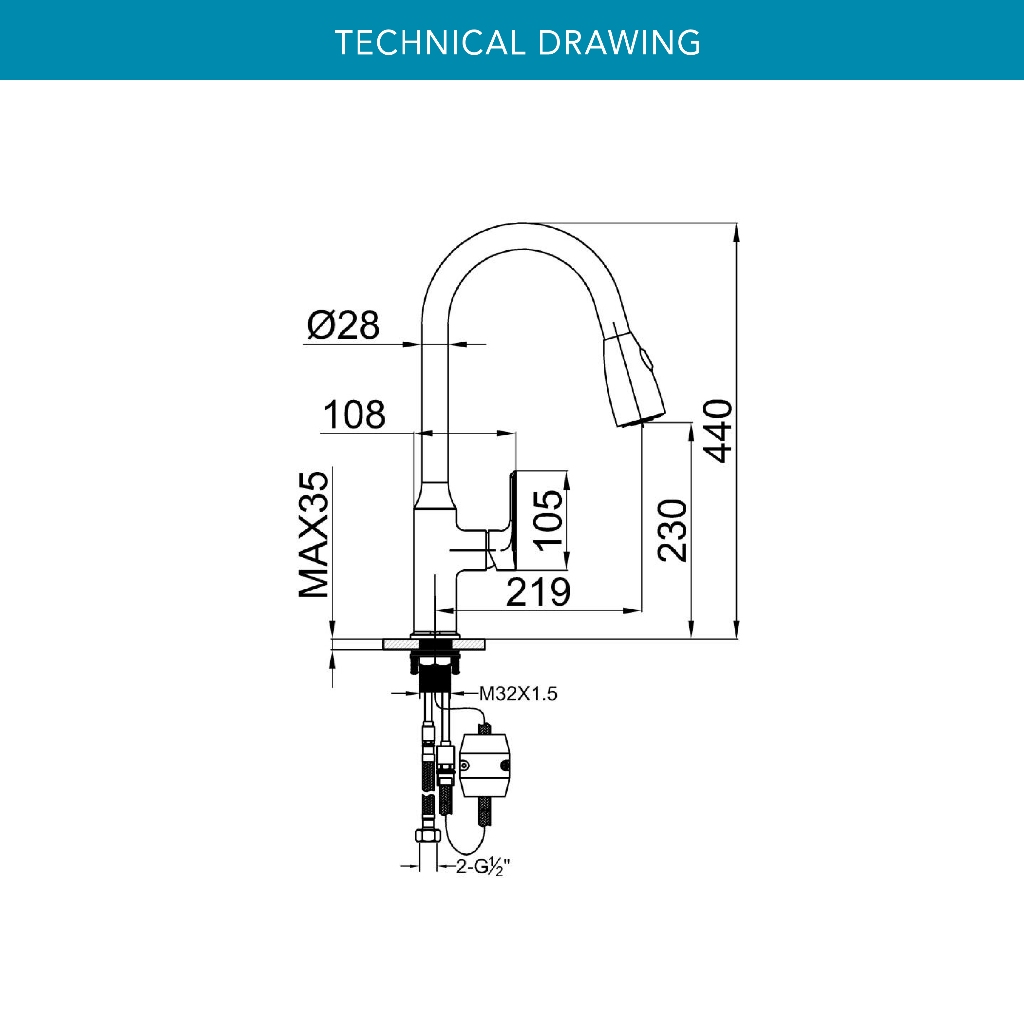 RIGEL Chrome Kitchen Pull-out Faucet Mixer Tap MXK722101P