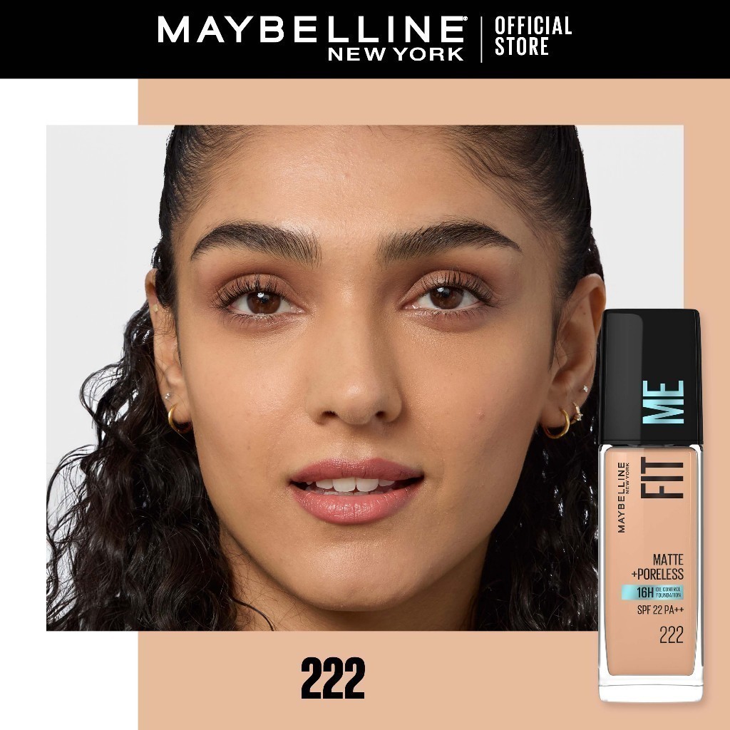 Maybelline Fit Me Matte + Poreless Liquid Foundation - SPF 22, 30ML, 16H Longwear Foundation, Blurs Pores, Oil-Free