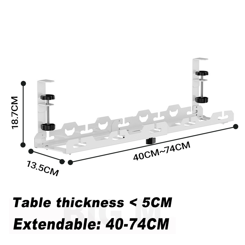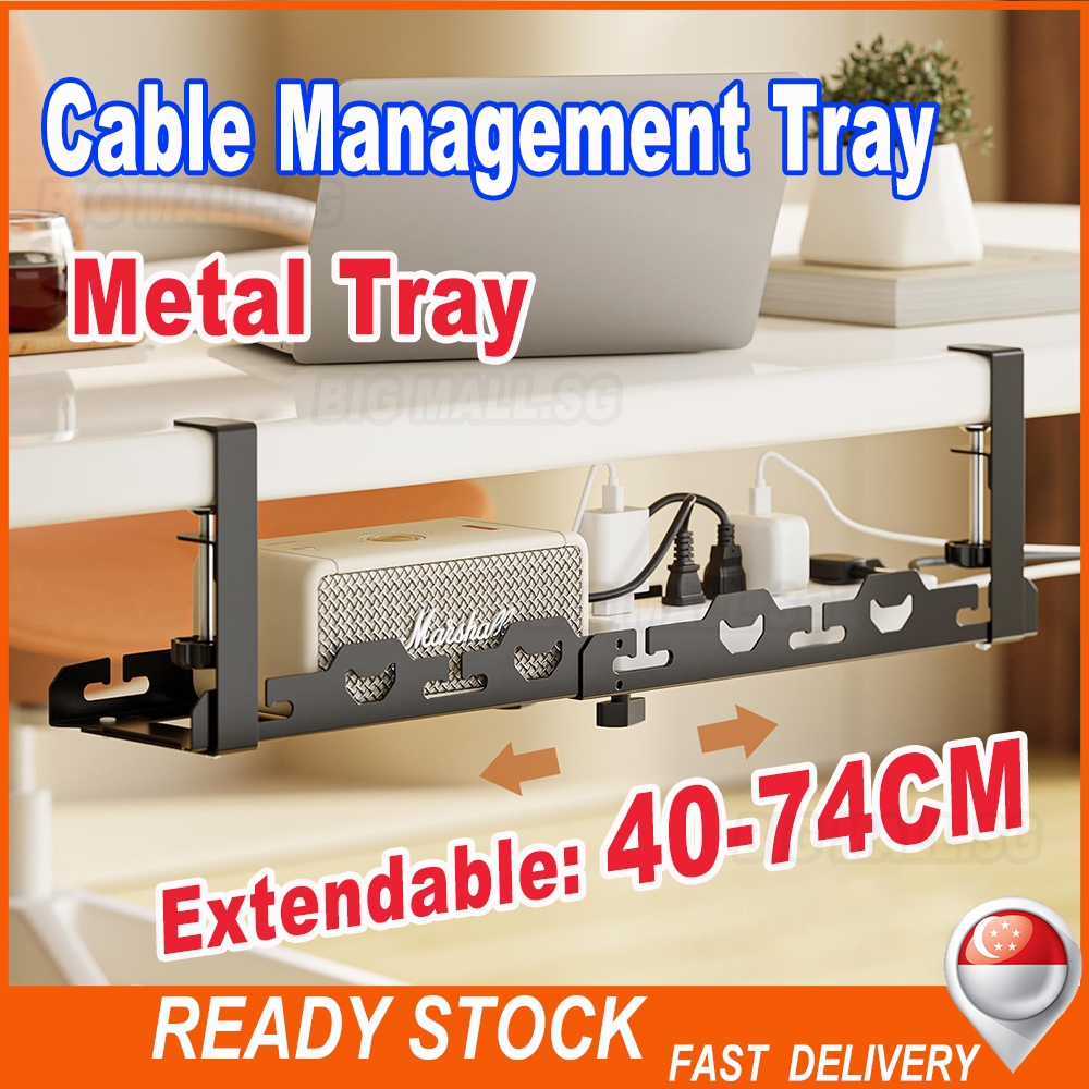 SG READY STOCK Adjustable Under Desk Cable Management Tray No-Drill Under Table Cable Organizer Extendable Cable Tray Under Desk Power Strip Holder Metal Cable Tray with Clamp