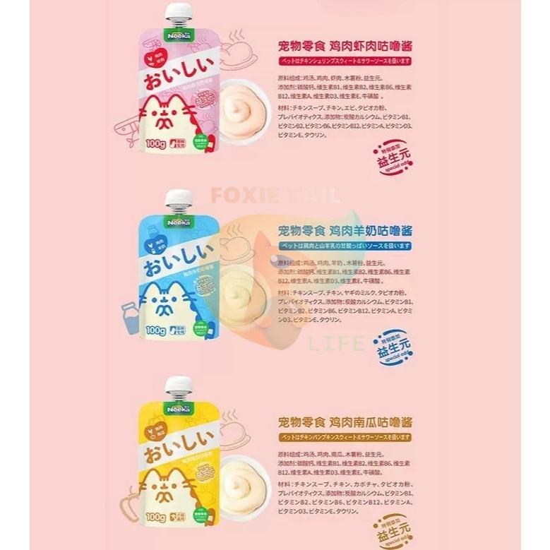Pet Wet Food Pouch for Cats & Dogs Neeka Prebiotics Nutrient 100g Cat Treats Dog Treats