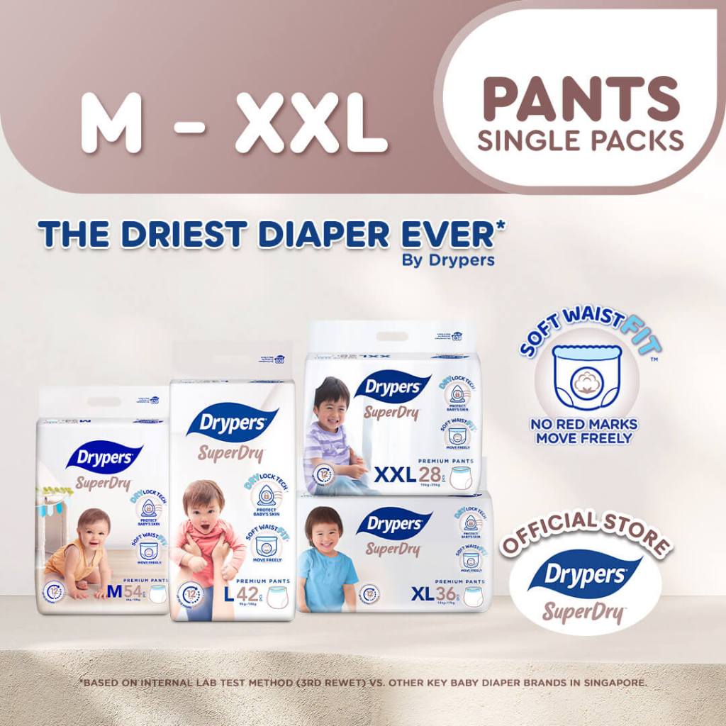 Drypers SuperDry Premium Pants Baby Diaper M/L/XL/XXL Size - Single Pack